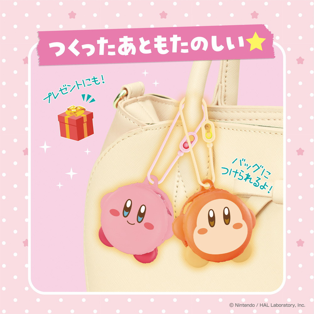 カービィとワドルディのマカロンと、タルトはつくったあとにキーチェーンにして一緒にお出かけできます。