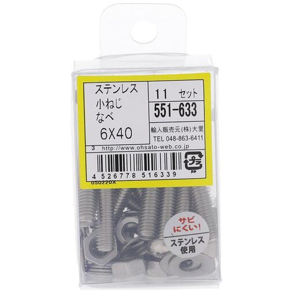 ステンレス製のナベ頭小ねじと丸座金と六角ナットのセット品です。
