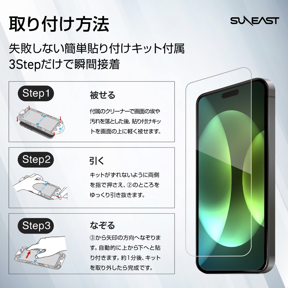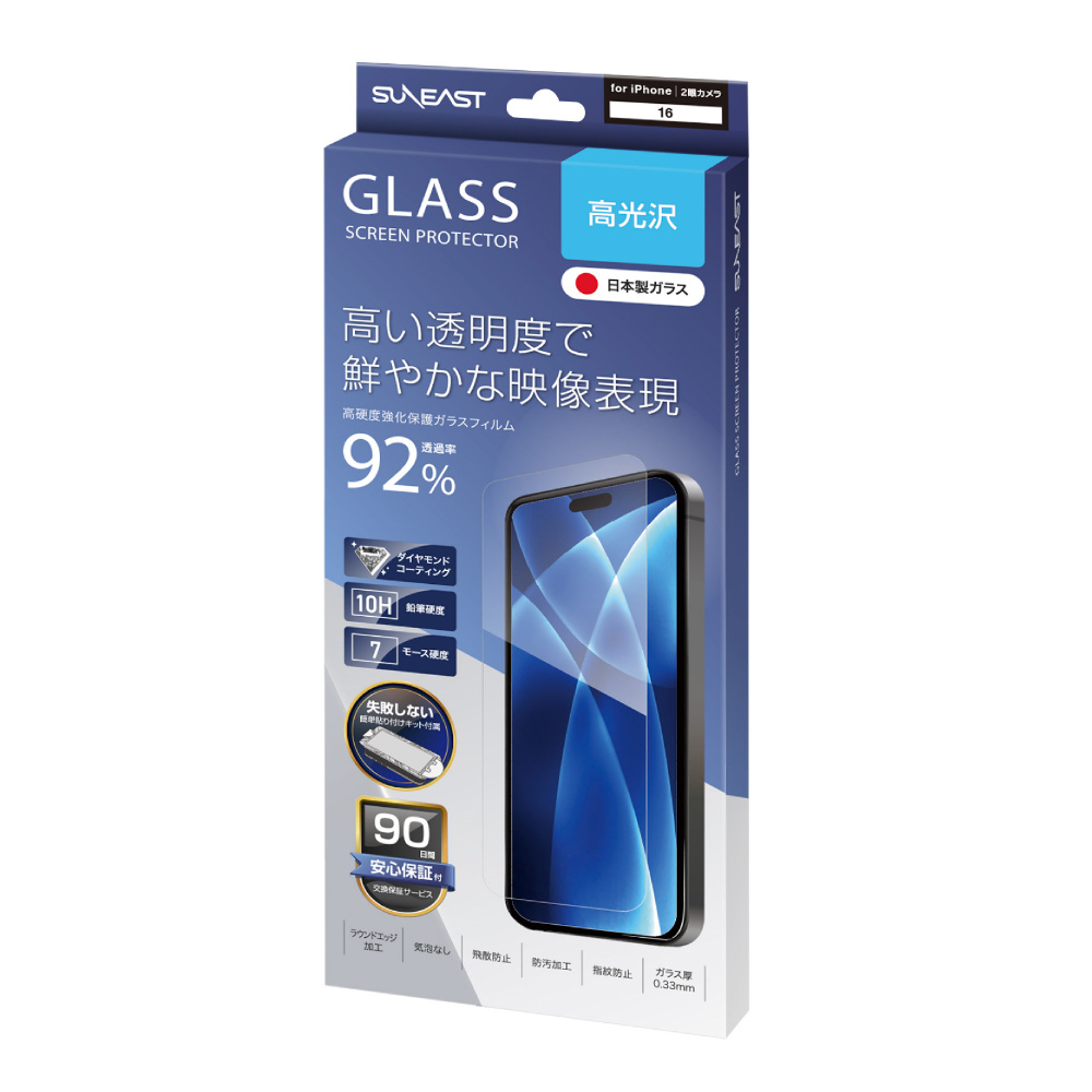 iPhone2024 6.1inch ガラスフィルム 高光沢 ダイヤモンドコーティング 10H 気泡レス 取り付けキット付 SE-GLAI1K0AF SUNEAST