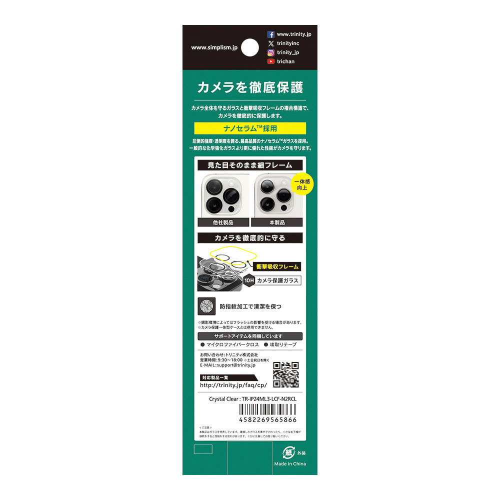 角割れしない ナノセラムガラス採用 カメラ周りを完全保護 一体型3Dフレームレンズ保護ガラス クリア 高透過率