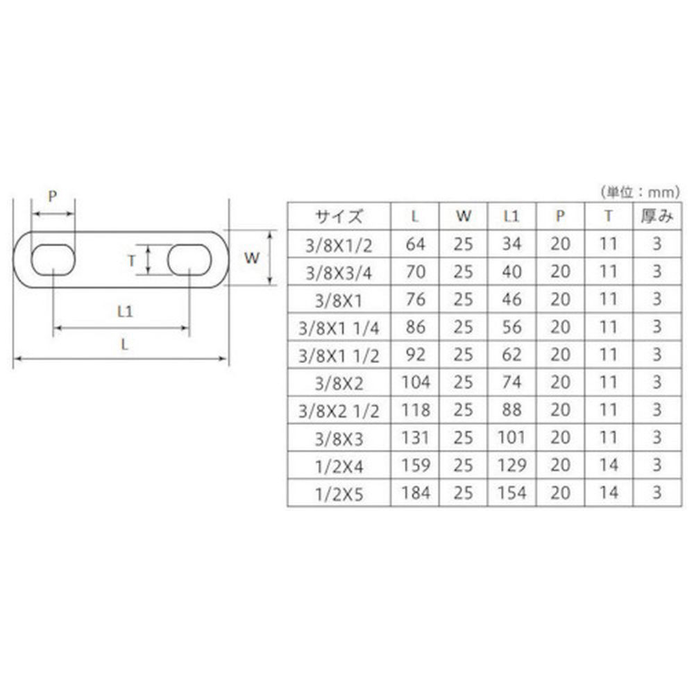 Uボルトプレート 溶融亜鉛メッキ25A 3/8X1