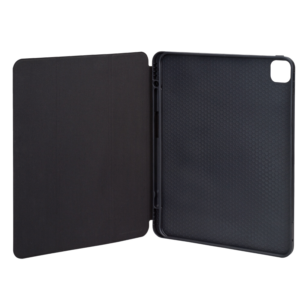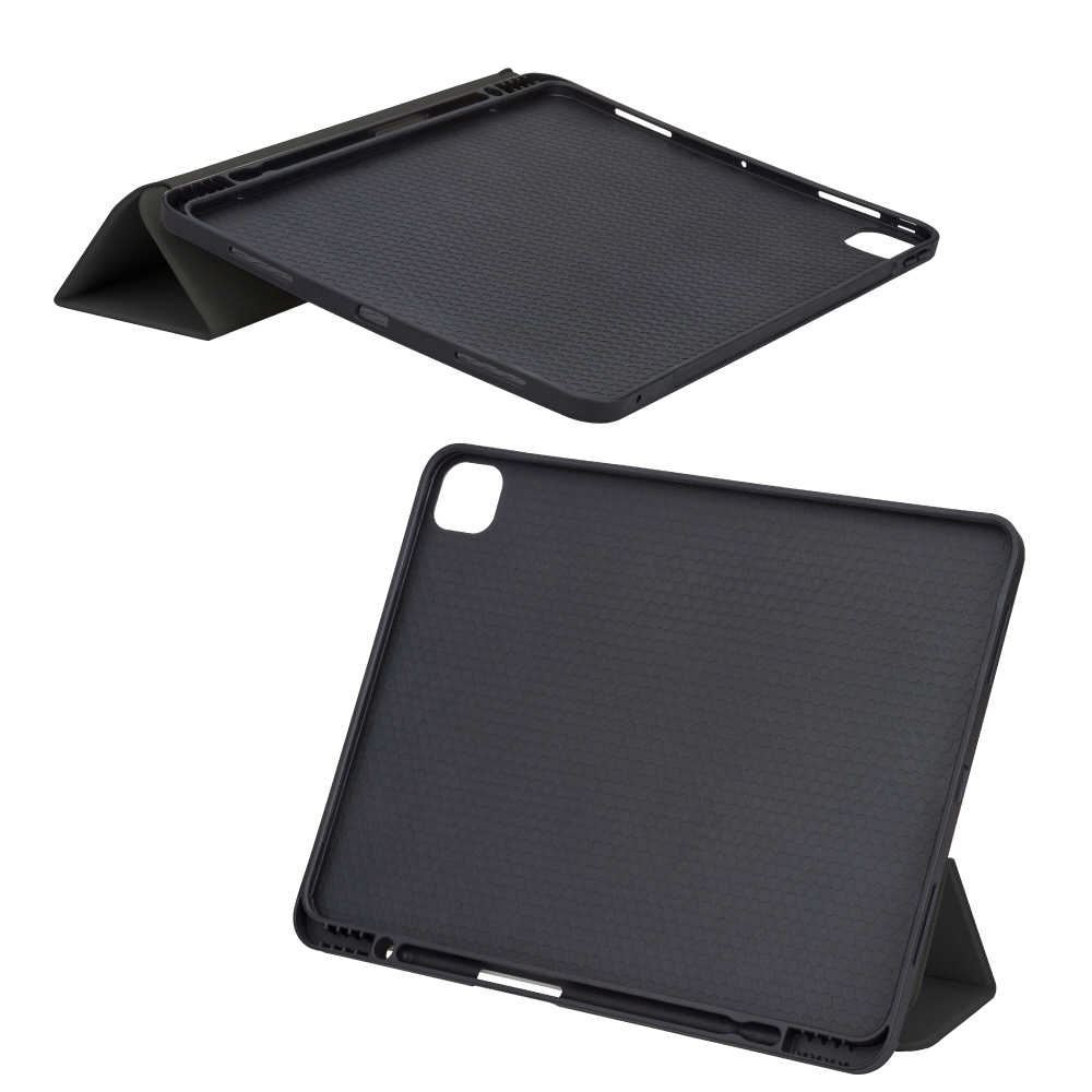 TPU製ハニカムケースとPU製液晶カバーとの組み合わせで、iPadをスマートにガード。