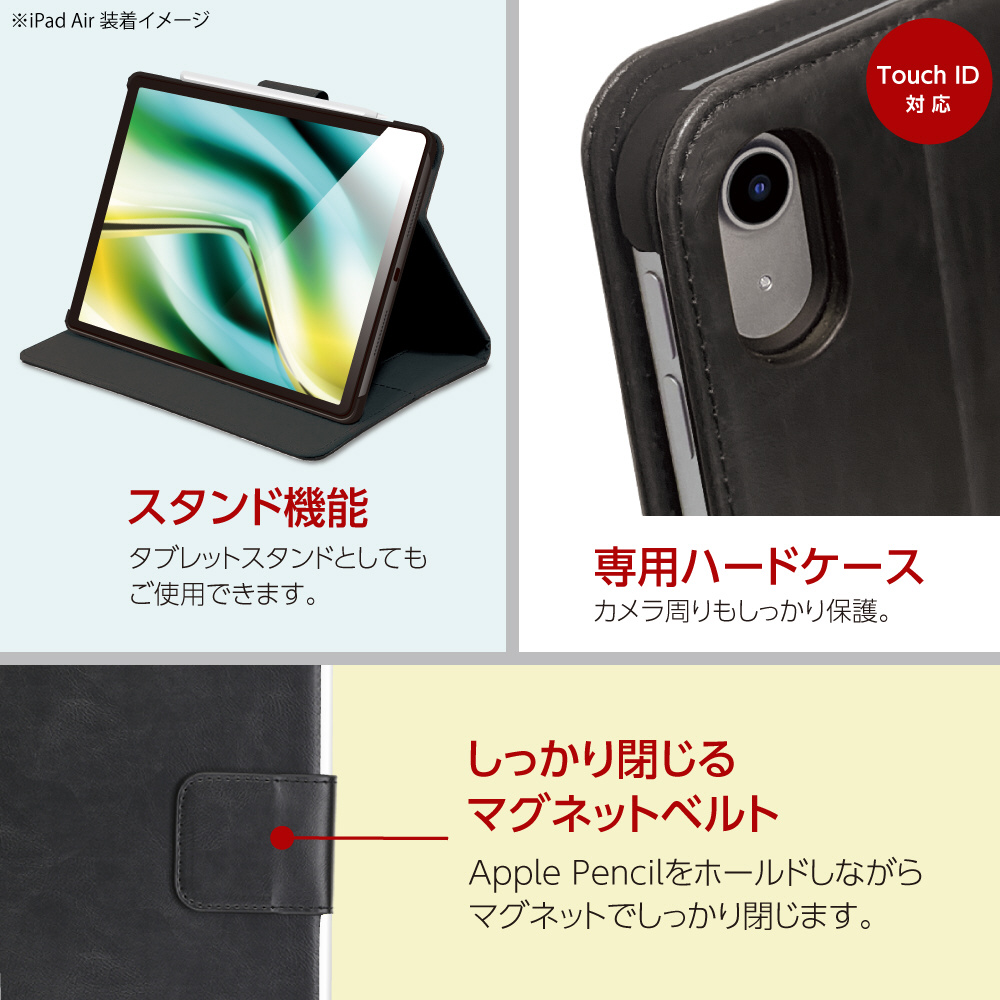 11インチiPad Air(M2)用 PUレザージャケット ブラック TBC-IPA24108BK