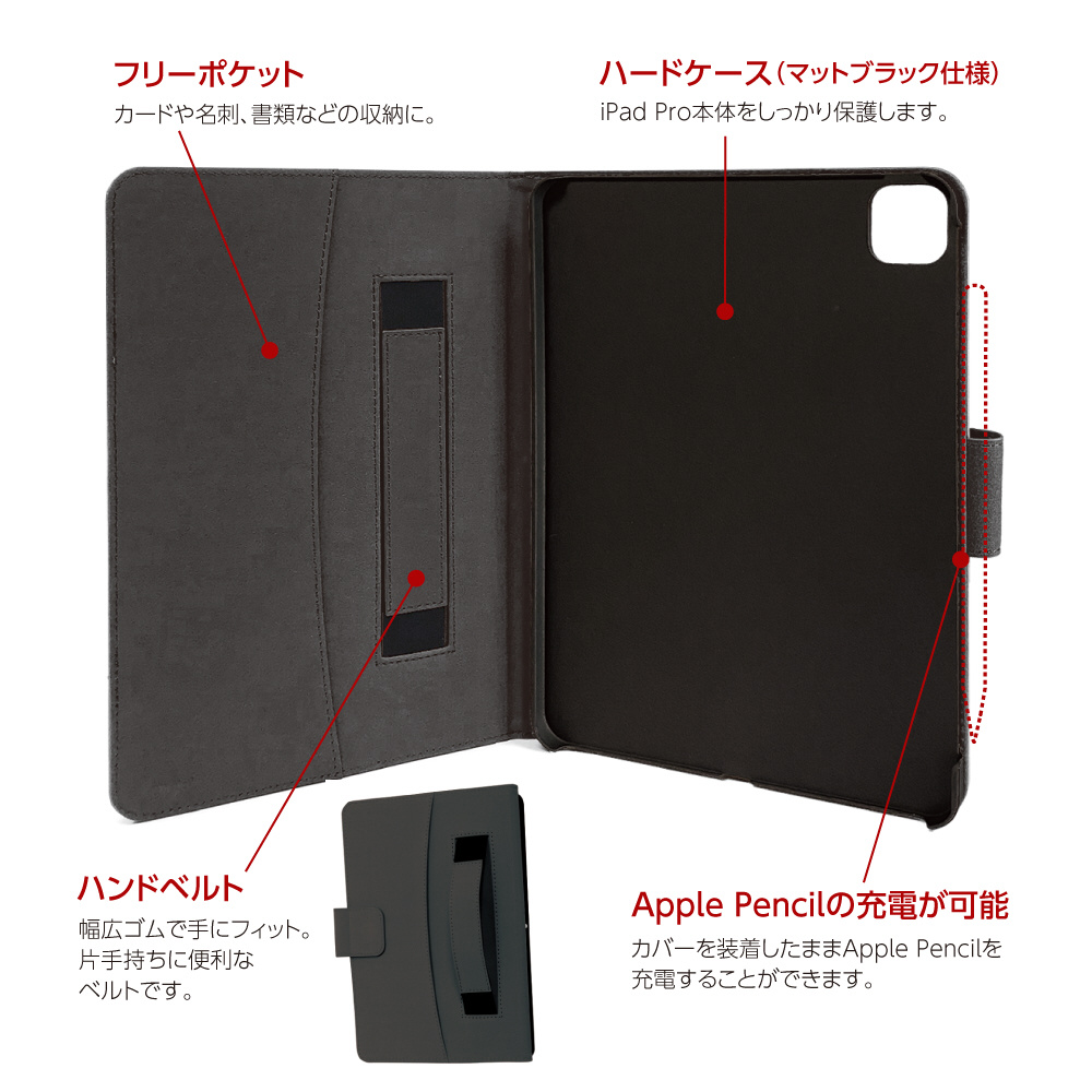 ■ApplePencilが挿せるペンホルダー付き。