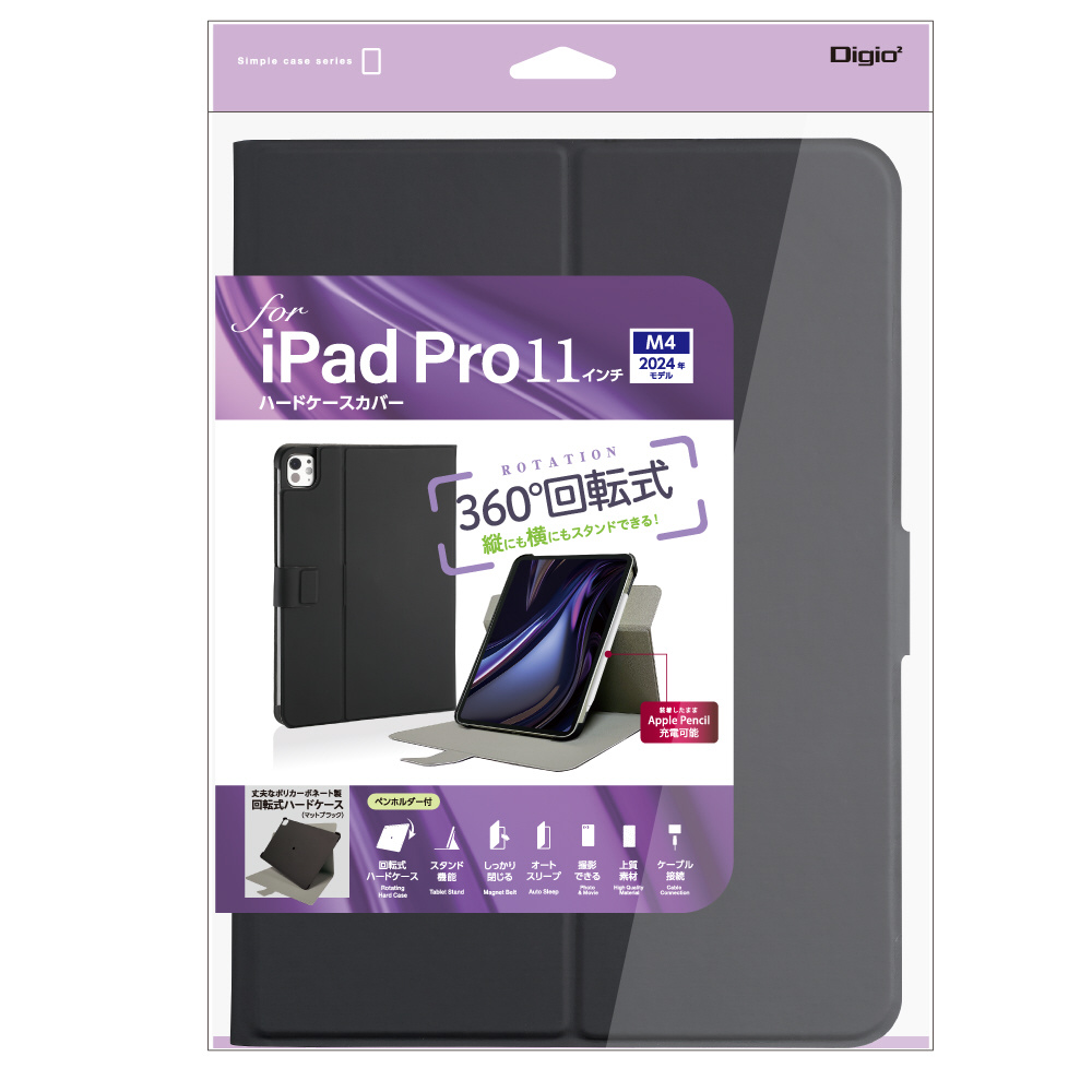 11インチiPad Pro(M4)用 回転式ハードケースカバー ブラック TBC-IPP24109BK