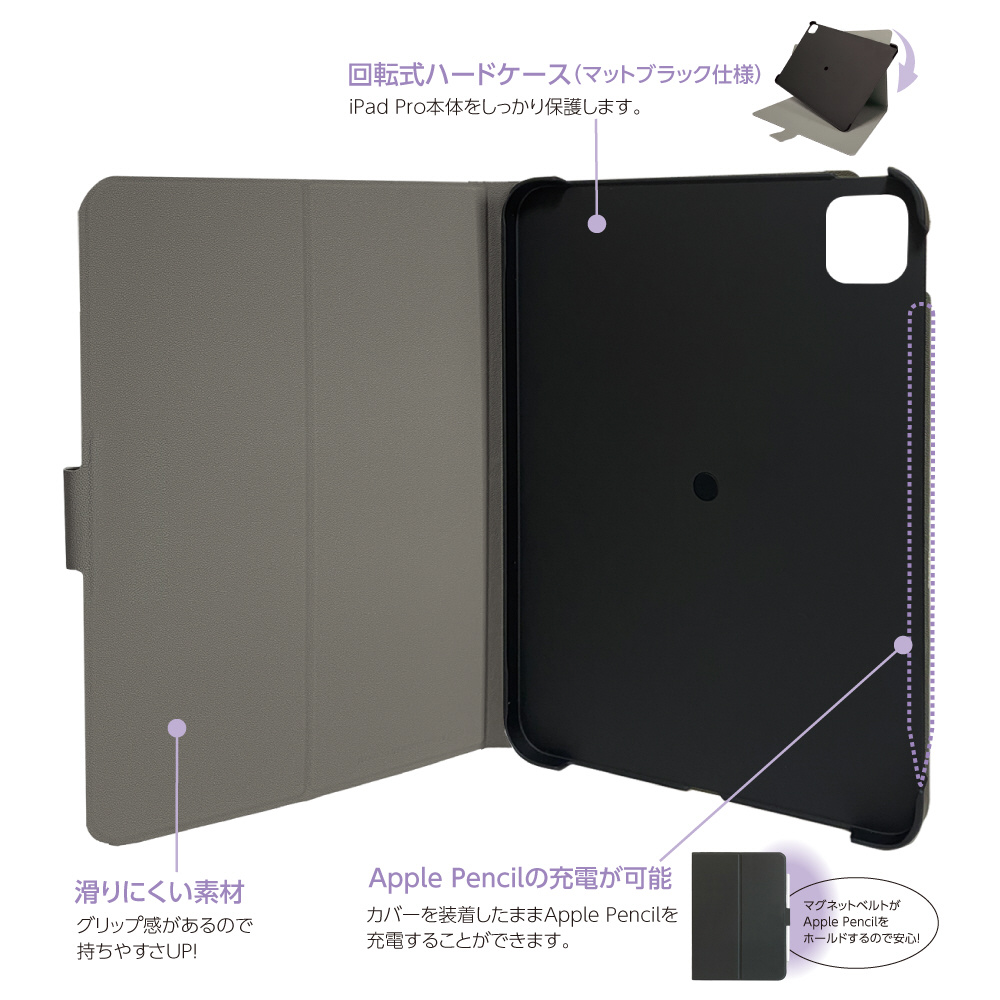 丈夫なポリカーボネート製回転式ハードケースがついたiPad専用カバー。