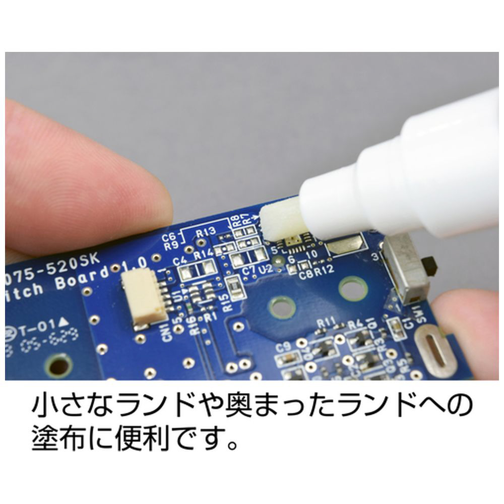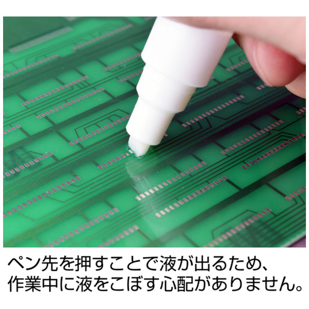 ・容量(ml): 15ペン型容器に入った塗りやすいフラックス。小さなランドや奥まった位置にあるランドへの塗布に便利です。硬さのあるフェルトペンを採用しているため液だれもしにくく、ペン先を押すことで液が出るため、作業中に液をこぼす心配がありません。持ち運びにも便利です。※液の詰め替えはできません。使い切ったら新しいものをお求めください。