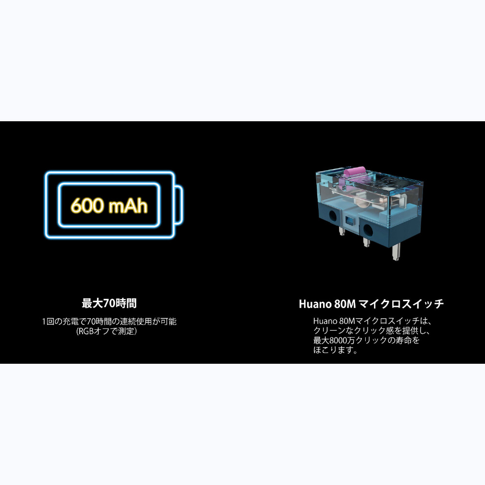 精密なセンサー、極めて低遅延のワイヤレス接続、高ポーリングレートにより、オフィスでもゲームでも、あるいは外出先でも最高のパフォーマンスを発揮します(Bluetooth接続の場合は125Hzのポーリングレートになります)。