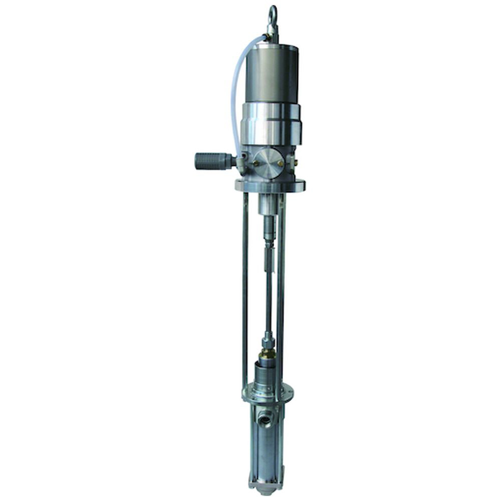 圧縮エア駆動の完全防爆型ポンプ。エアモーターと下ポンプが分割された安全設計です。