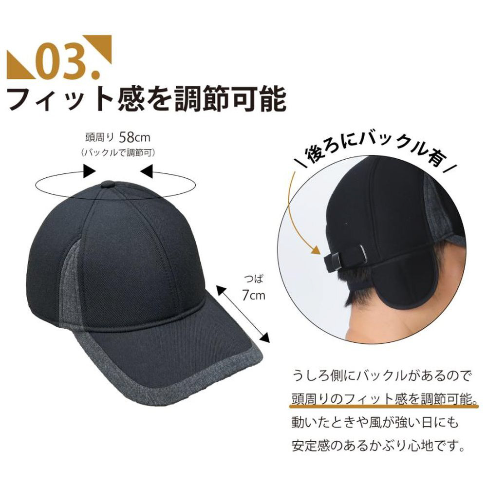 表地にはっ水加工を施した耳あて付きワークキャップ
