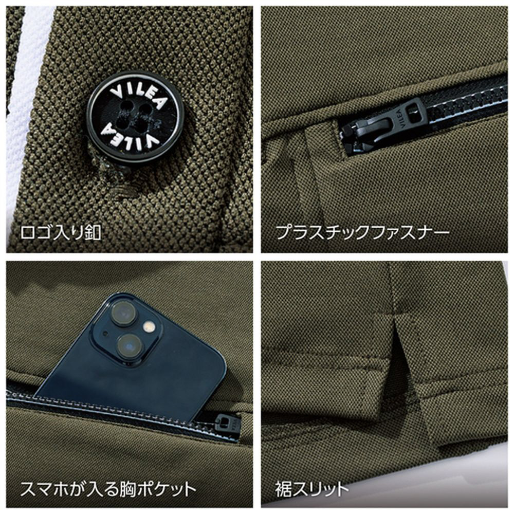 ■VILEAロゴ入りミルフィーユ釦がポイント。