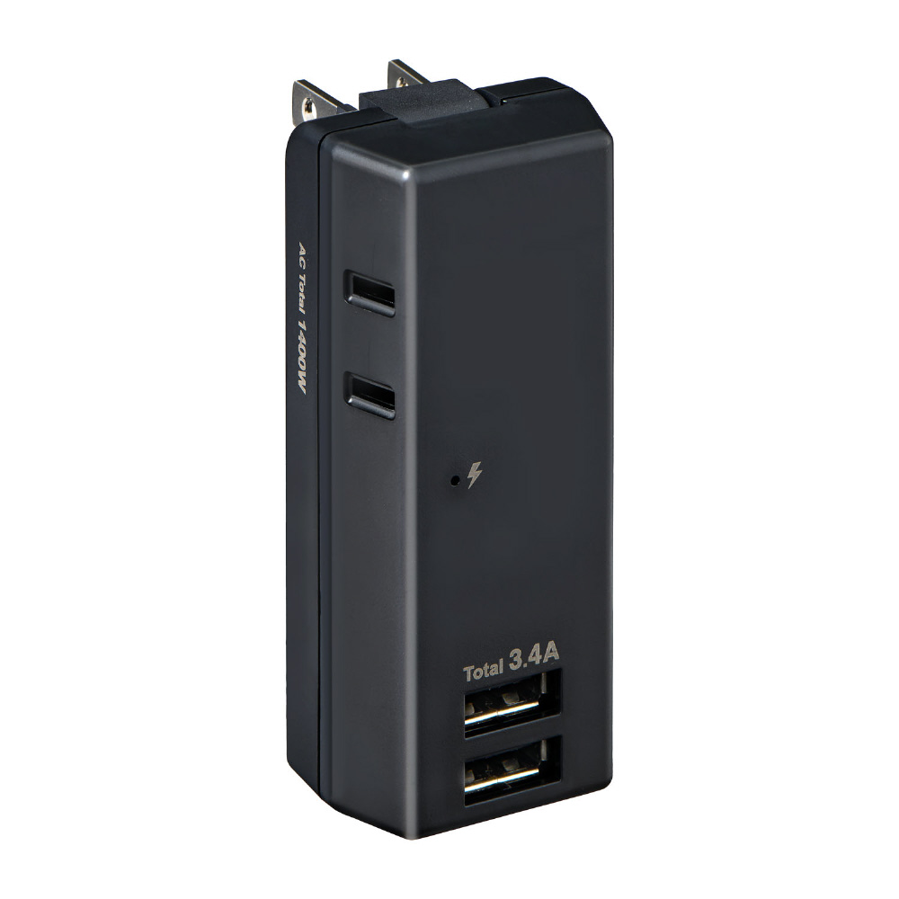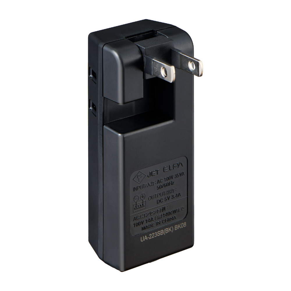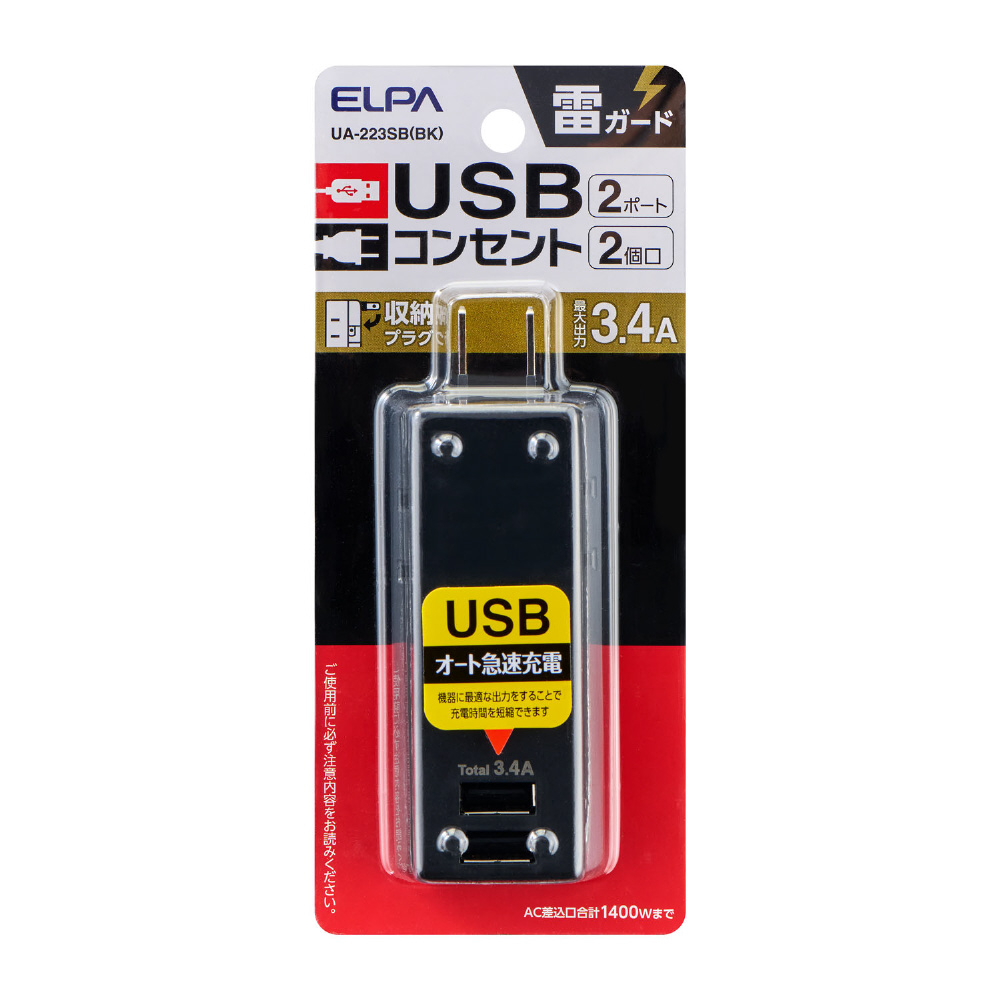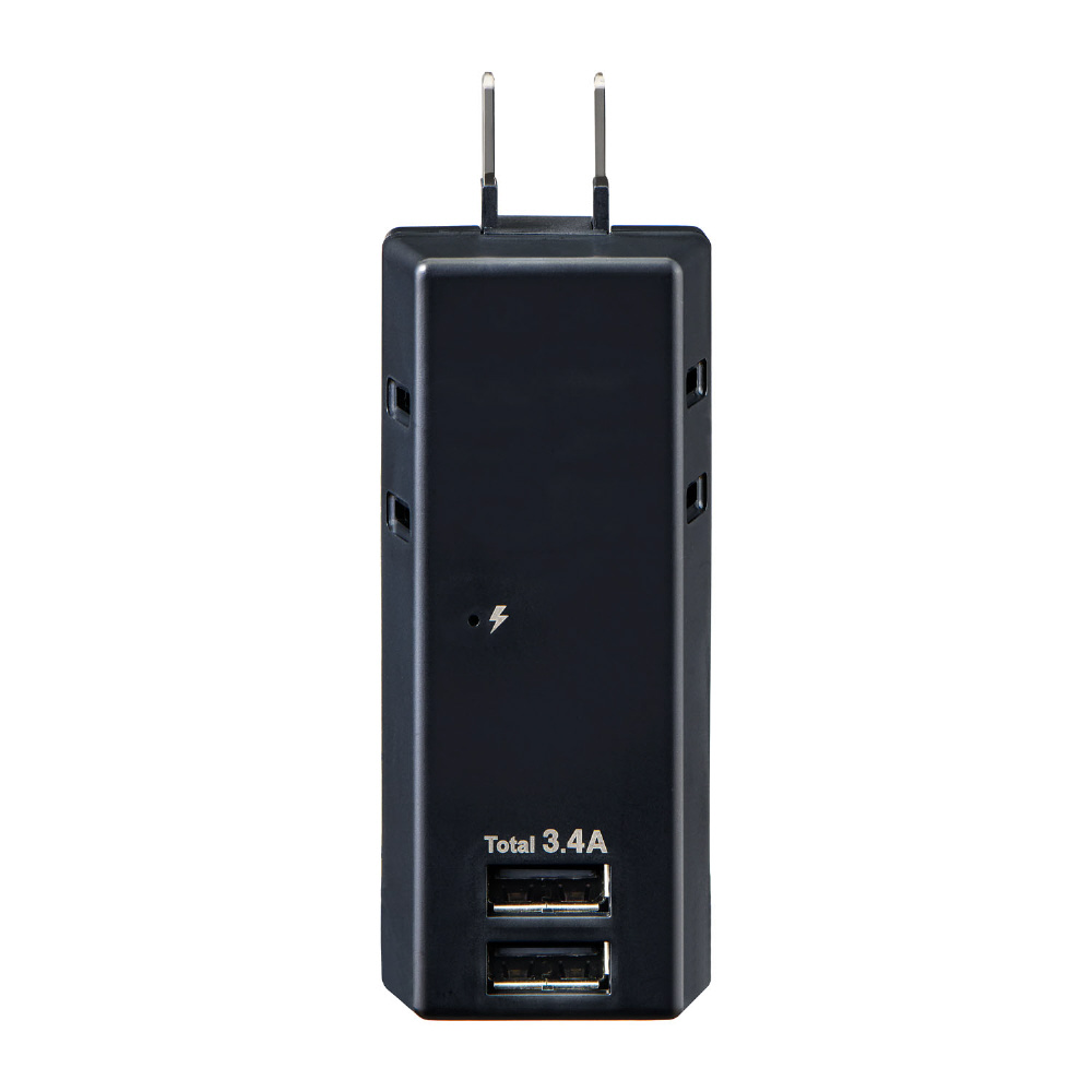 耐雷USBタップ2個口2ポート3.4A UA-223SB(BK) [2ポート]