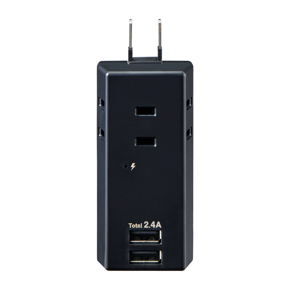 耐雷USBタップ3個口2ポート2.4A UA-322SB(BK) [2ポート]