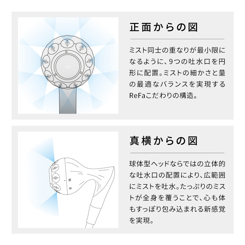 ReFa史上初の球体型ヘッドで、霧と同等のサイズのミストに全身包まれる新感覚の心地よさを実現しました。