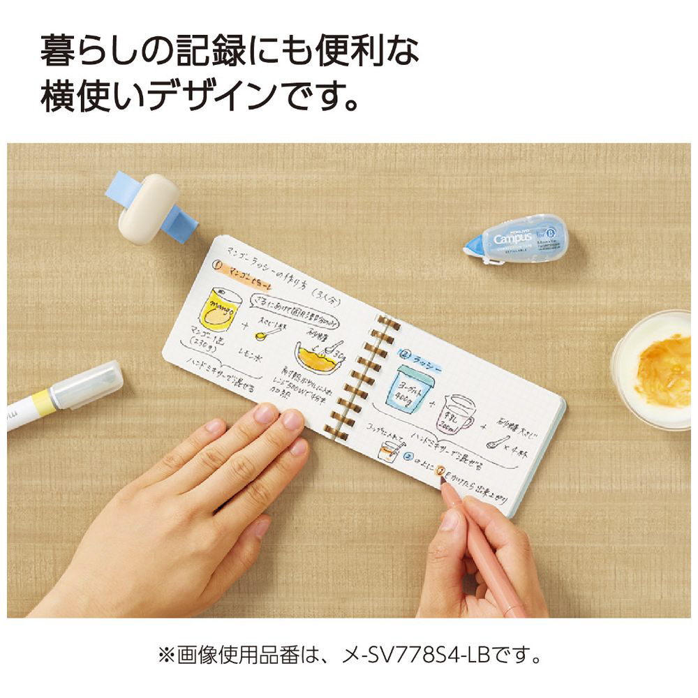 ●平らに開くので書き込みやすい、平らに折り返せるので狭い場所でも心地よく使える、といったリングメモのよさはそのままに、書くときリングに手が当たっても気にせず端まで美しく書けます。