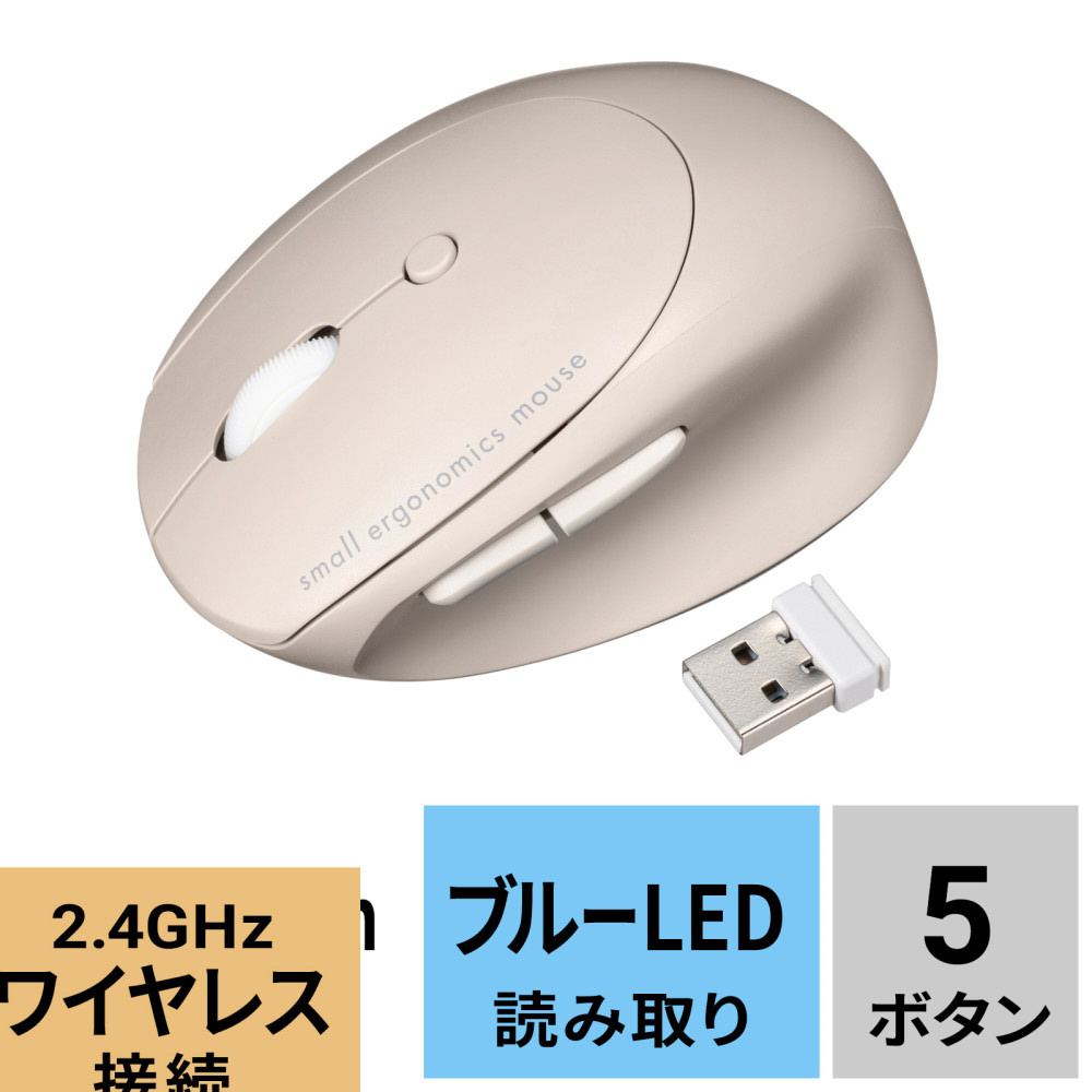「静音ワイヤレス小型エルゴノミクスマウス(充電式・5ボタン)」