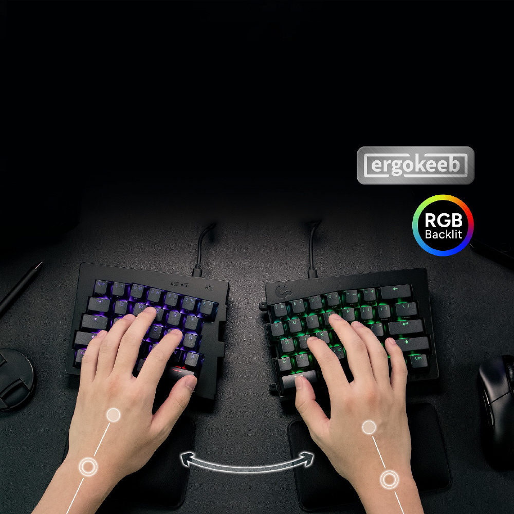 腕や手首の負担を軽減するアリス配列の分離型メカニカルキーボード