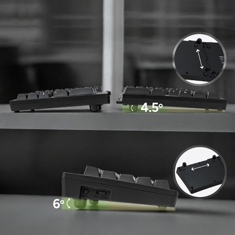 キースイッチにはGateron G Proの茶軸(タクタイル)・青軸(クリッキー)・赤軸(リニア)・銀軸(リニア)、CHERRY MXの静音赤軸(リニア)を採用し、好みの打鍵感の物を選択できます。