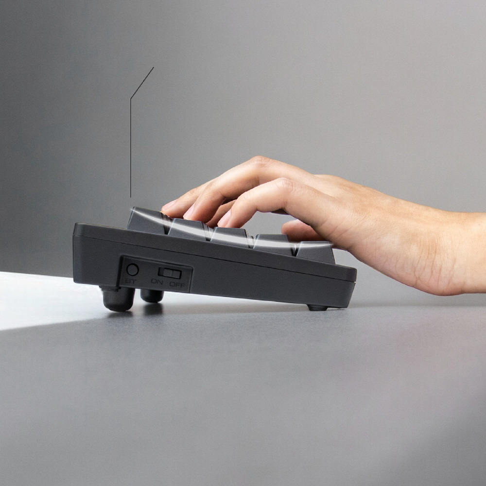 Mistelが開発したダブルショットキーキャップを採用。文字が印刷ではなく2色成型によって打ち出されているため、摩耗によって文字が消えることがありません。