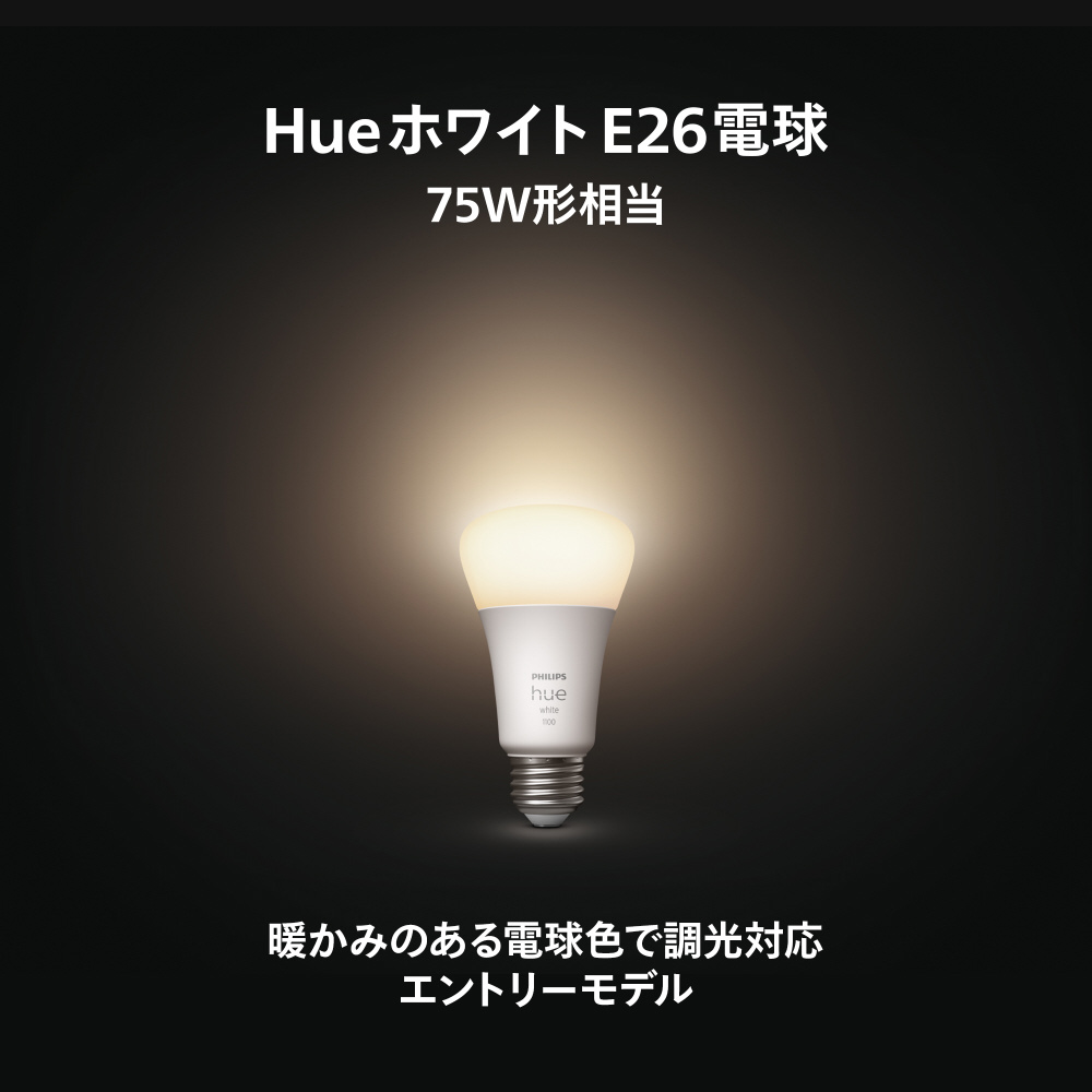 ●スマートホームのエントリーモデル:Hue ホワイトは、温かな電球色の明かりで、調光ができるライトです。初めてスマートホームに切り替える人に最適です。75W相当の登場で、今までよりもしっかりと明るさを確保できます。