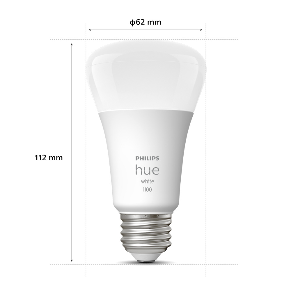 従来の800lmタイプから、明るさ40%アップの1100lm(75W相当)タイプが新登場。Hue ホワイトは温かみのある電球色のスマート照明で、スマホやスマートスピーカー、専用アクセサリーで明るさの調整が簡単にできます。