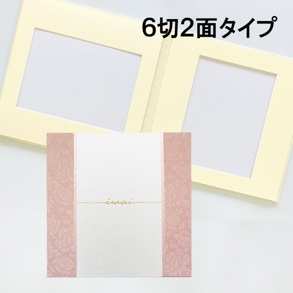淡い色合いの優しい雰囲気が感じられる台紙です。生地表面には花柄の凹凸が入っており立体的に見える一味違った写真台紙となってます。