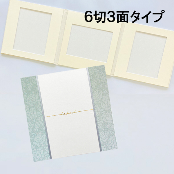 淡い色合いの優しい雰囲気が感じられる台紙です。生地表面には花柄の凹凸が入っており立体的に見える一味違った写真台紙となってます。