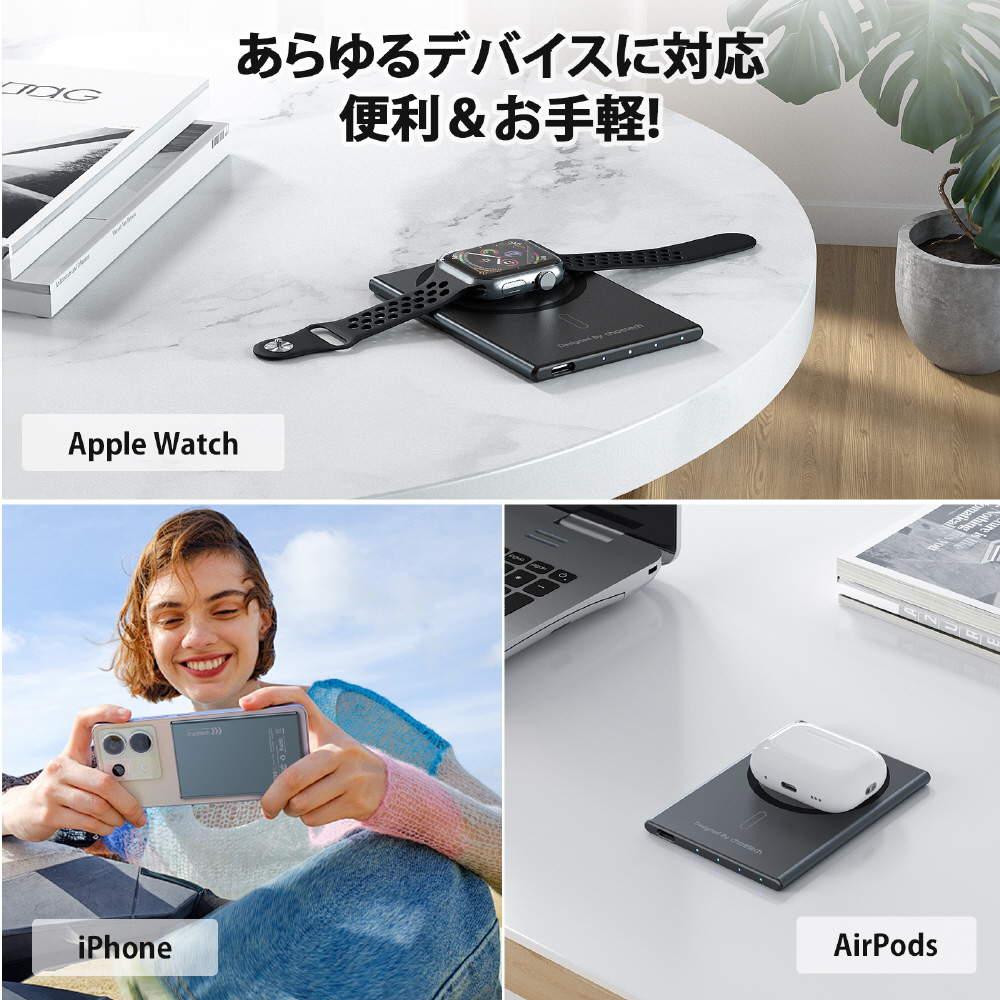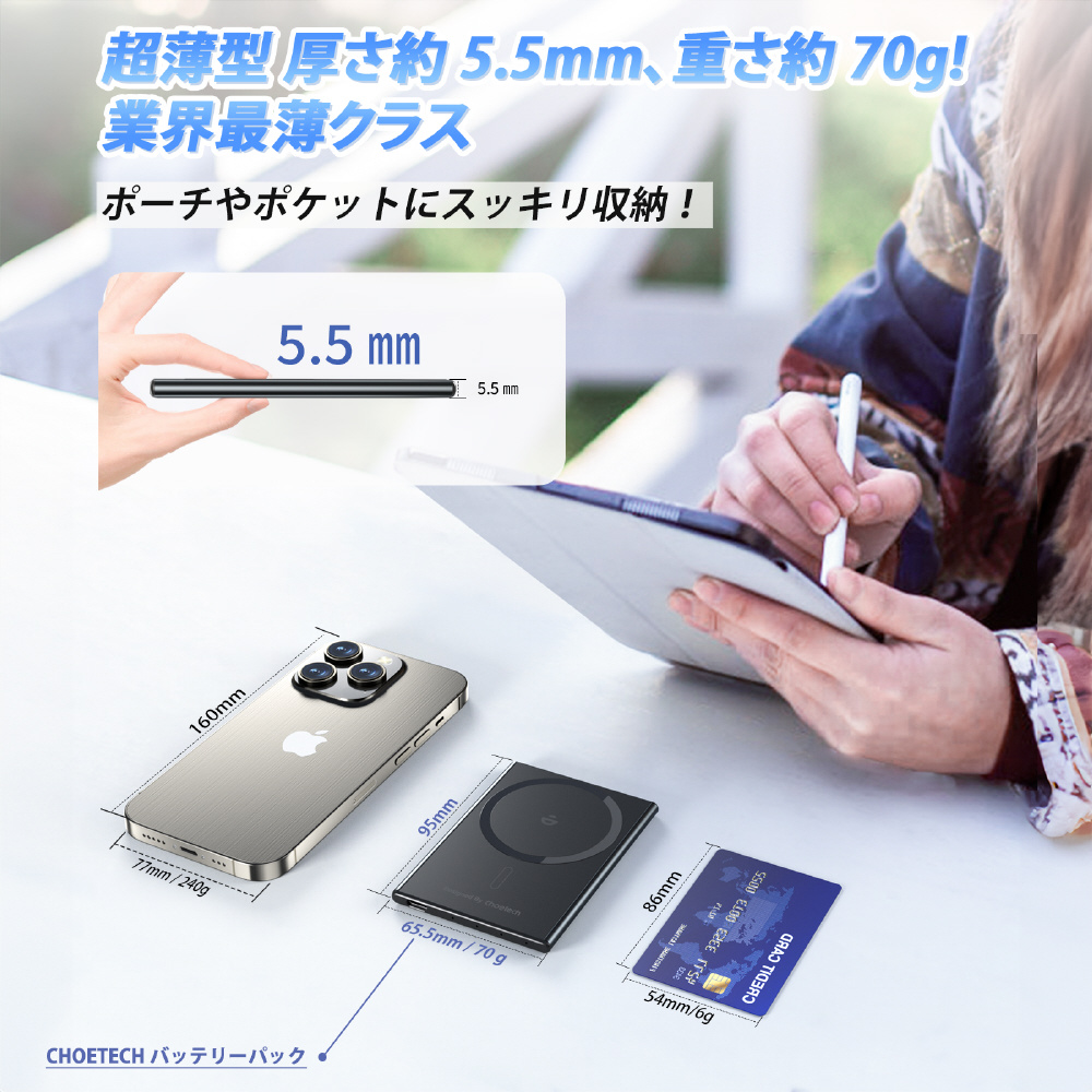 超薄型&軽量&マグネット吸着で充電中も移動中もストレスフリー。