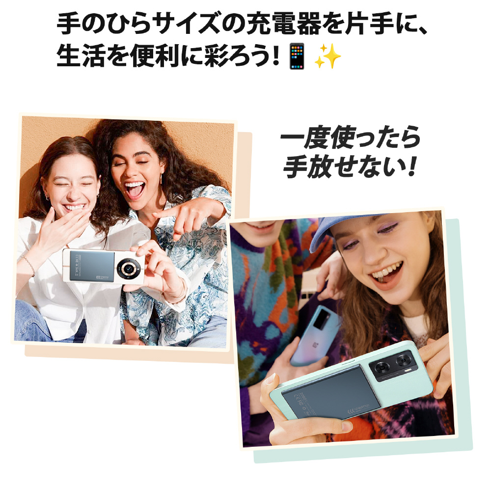 手のひらサイズの充電器を連れて、いつでもどこでもバッテリーチャージ。