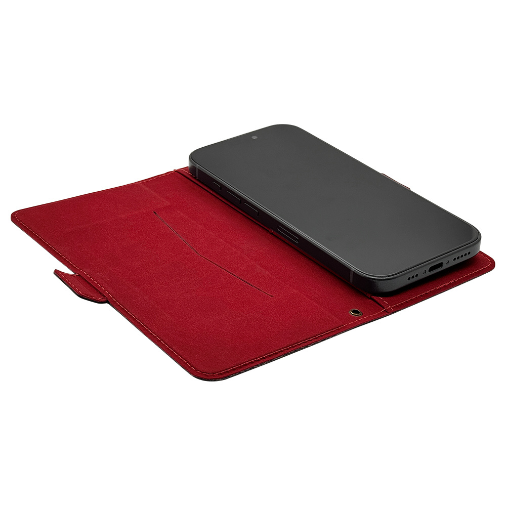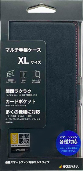 汎用薄型サイドマグネットマルチ手帳型ケース XLサイズ ブラック×レッド RFRBOXL01BKY