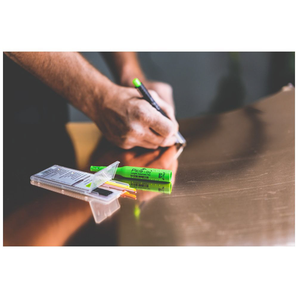 木材(ウェット・ドライ)、鉄、樹脂、コンクリート、タイルなどへの線引きやマーキングに。
