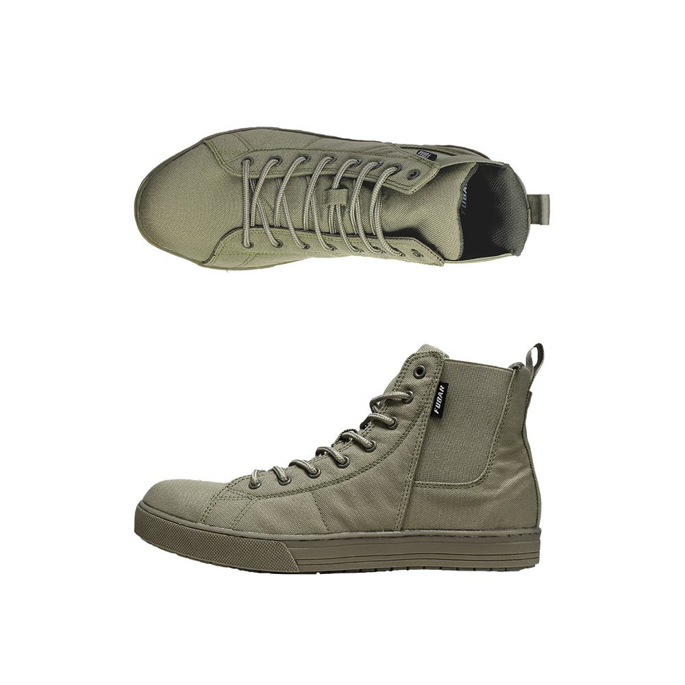 ■FUBARブランドからシリーズ第三段目となるワークシューズは【サイドゴア】を採用したキャンパスハイカットタイプ。
