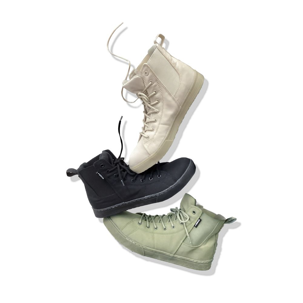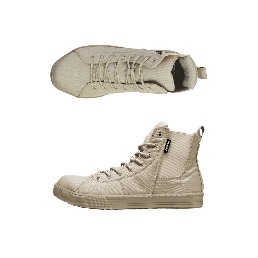FUBARブランドからシリーズ第三段目となるワークシューズは【サイドゴア】を採用したキャンパスハイカットタイプ。