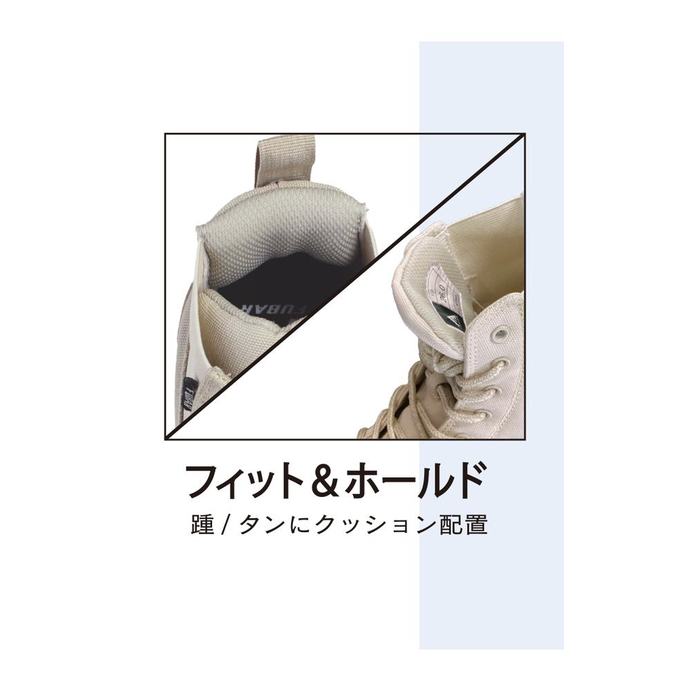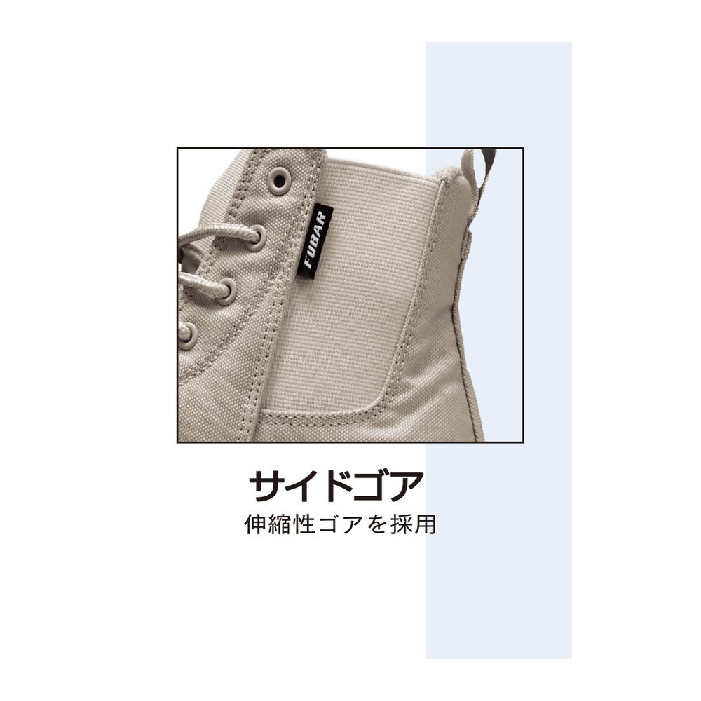 ■FUBARブランドからシリーズ第三段目となるワークシューズは【サイドゴア】を採用したキャンパスハイカットタイプ。