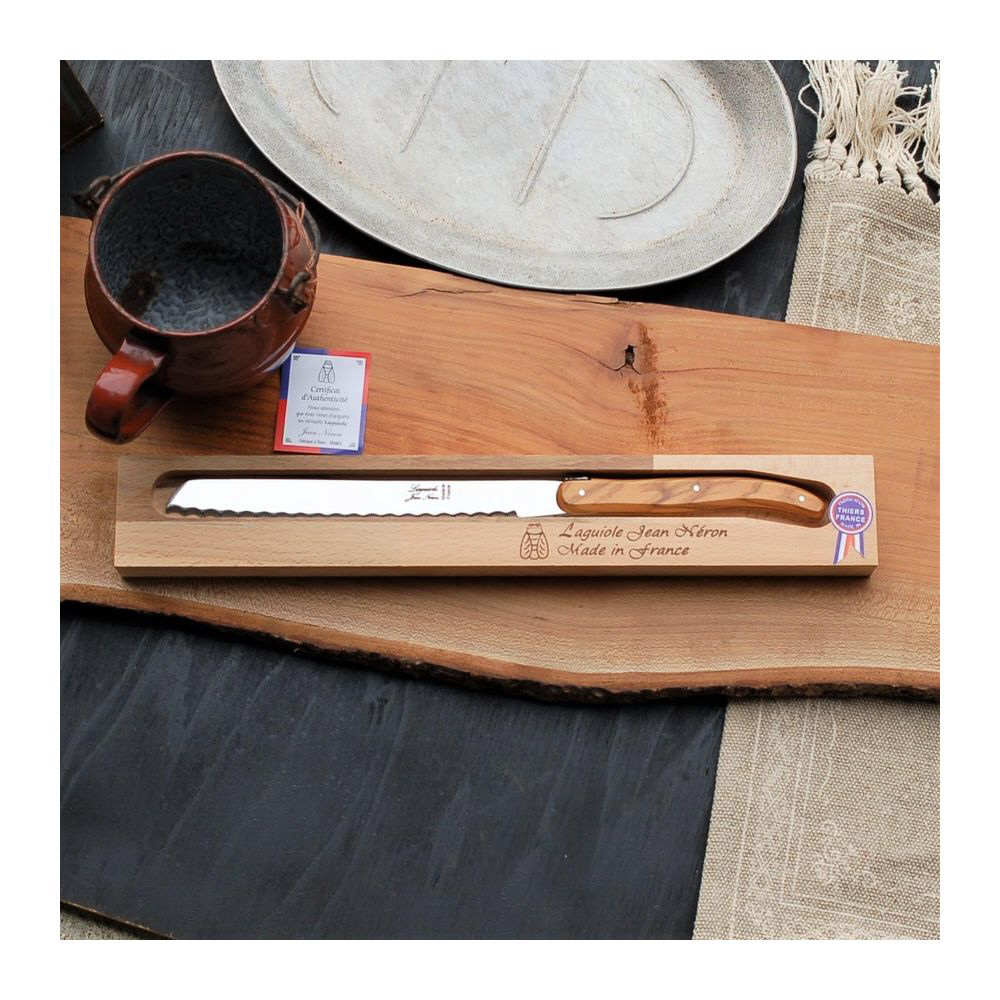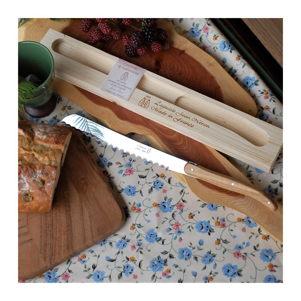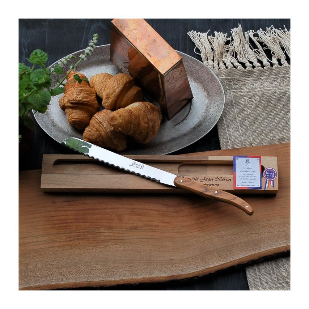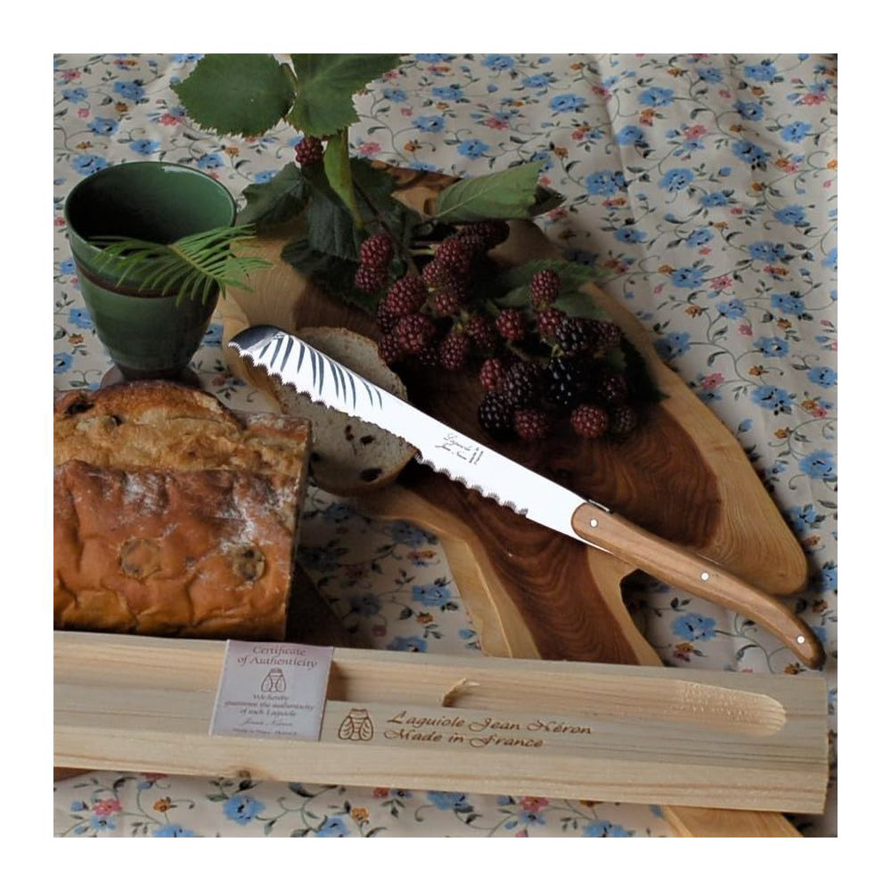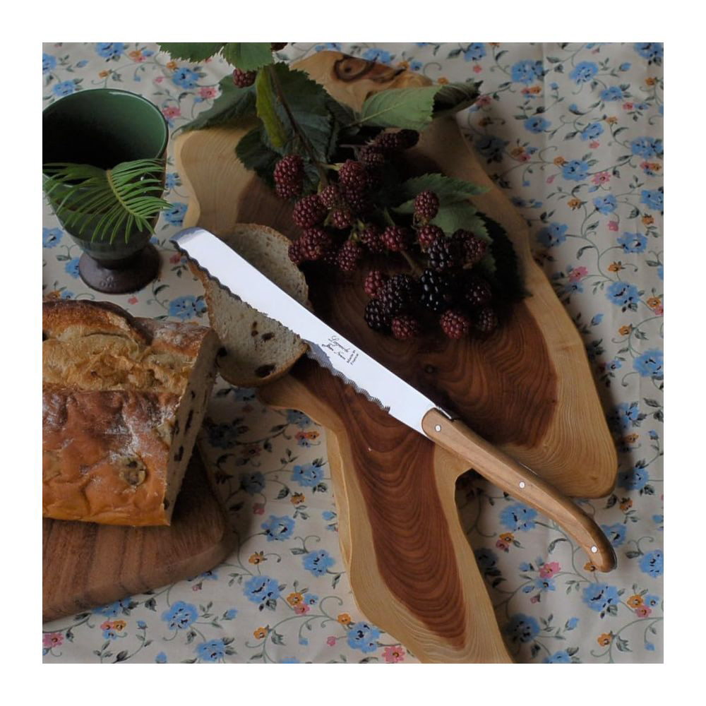 天然オリーブウッドハンドルが美しいライヨールパン切ナイフ。