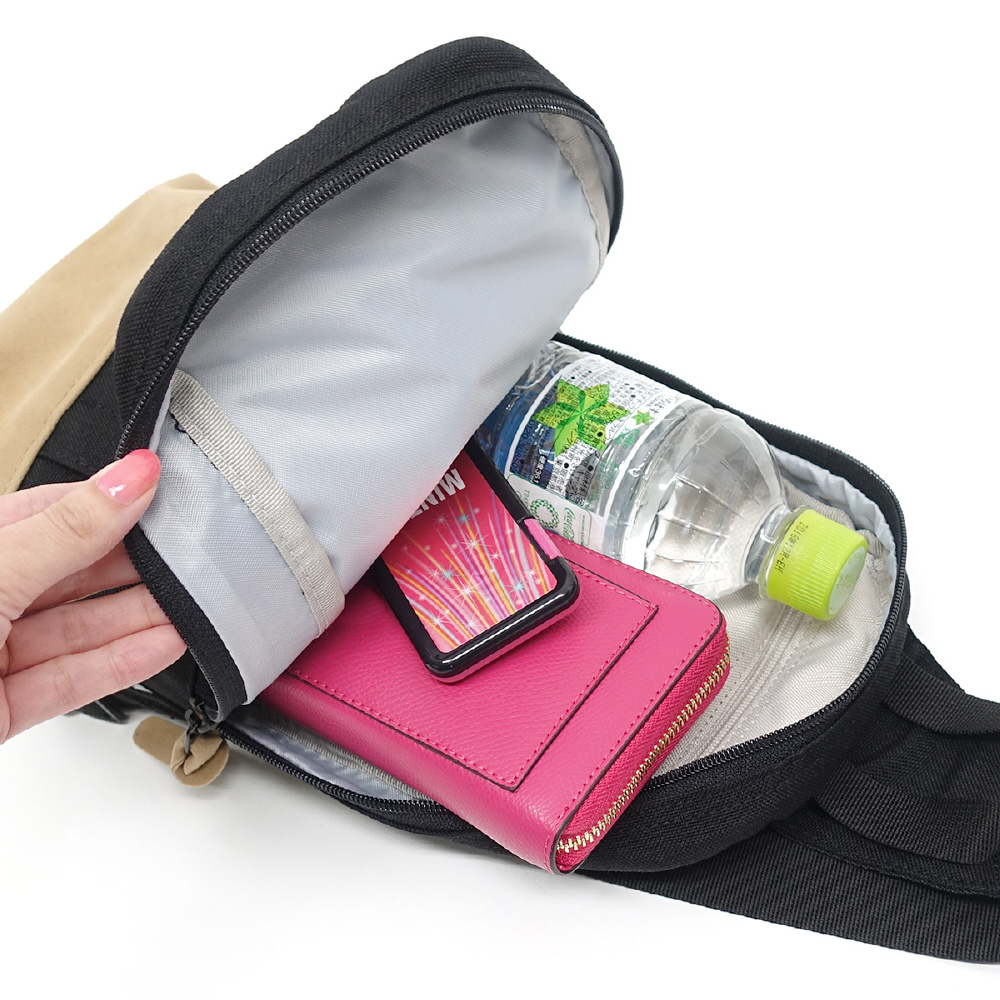 フロントには二層になったジッパーポケットを装備しているため、小物を分けて収納することができます。また、メインルームにはゲーム機やスマートフォンの収納に適したパッド入りの収納スペースを設けており、持ち運びも安心です。日常使いはもちろん、コーディネートのアクセントとしても大活躍間違いなしのアイテムです。