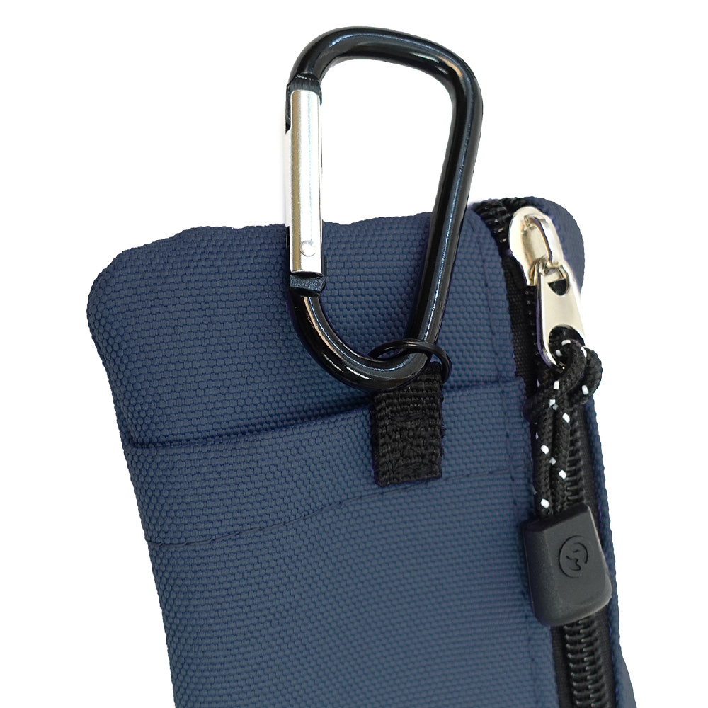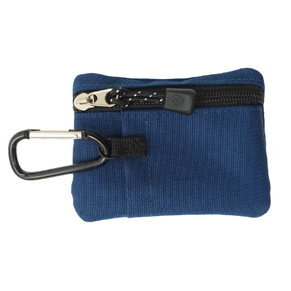 付属のカラビナでバッグやボトムスに取り付けて持ち運びが可能。フロント、バッグにそれぞれジッパーポケットがあり、小銭などはもちろん、鍵やリップなど小物をいれて持ち運ぶこともできます。バックにはカードポケットも設けており、ICカードなどを収納できます。カラーはブラック、ネイビー、ラベンダー、ライトブルーの全4色展開。プレゼントなどにもおすすめのアイテムです。