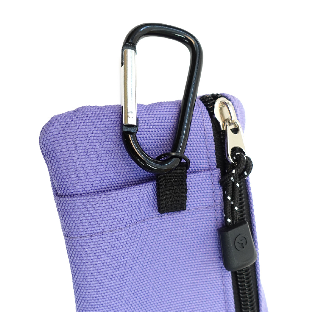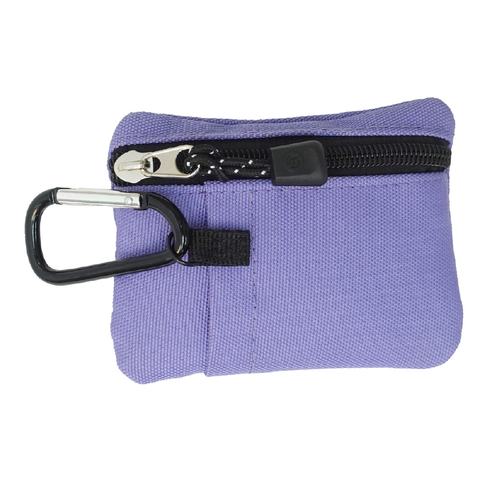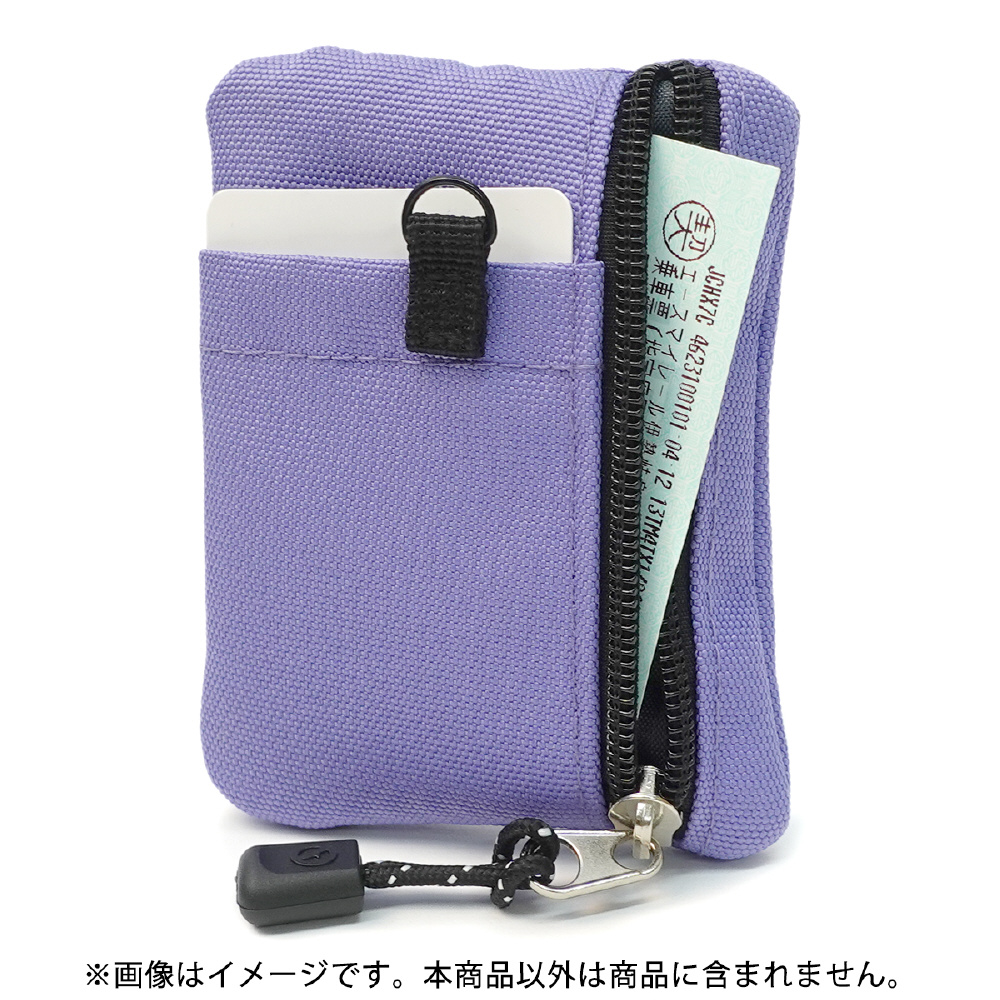 付属のカラビナでバッグやボトムスに取り付けて持ち運びが可能。フロント、バッグにそれぞれジッパーポケットがあり、小銭などはもちろん、鍵やリップなど小物をいれて持ち運ぶこともできます。バックにはカードポケットも設けており、ICカードなどを収納できます。カラーはブラック、ネイビー、ラベンダー、ライトブルーの全4色展開。プレゼントなどにもおすすめのアイテムです。