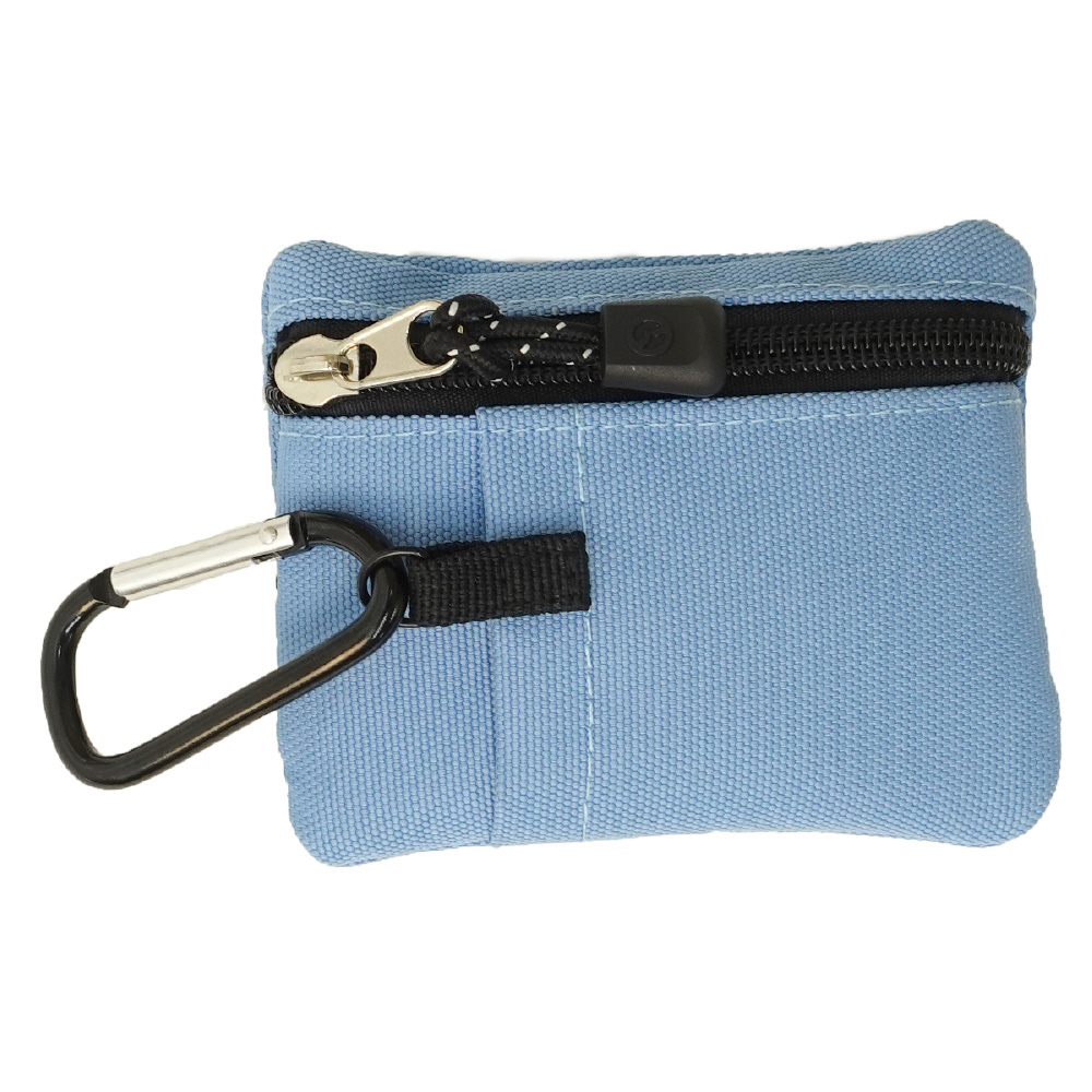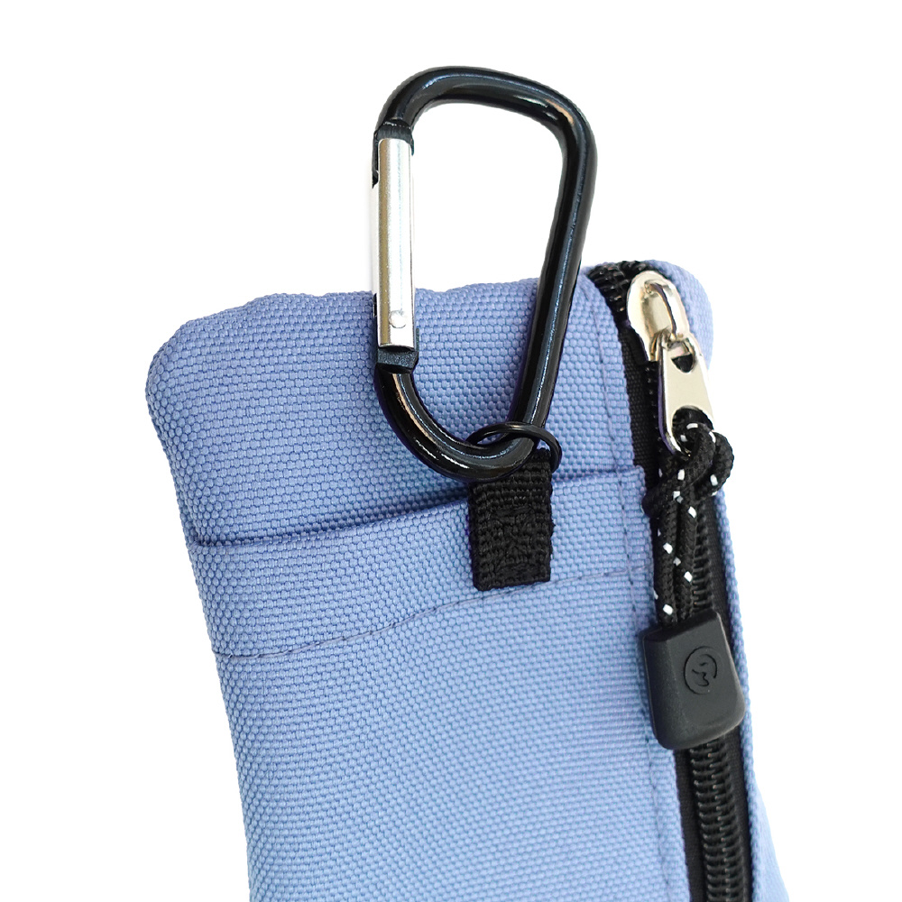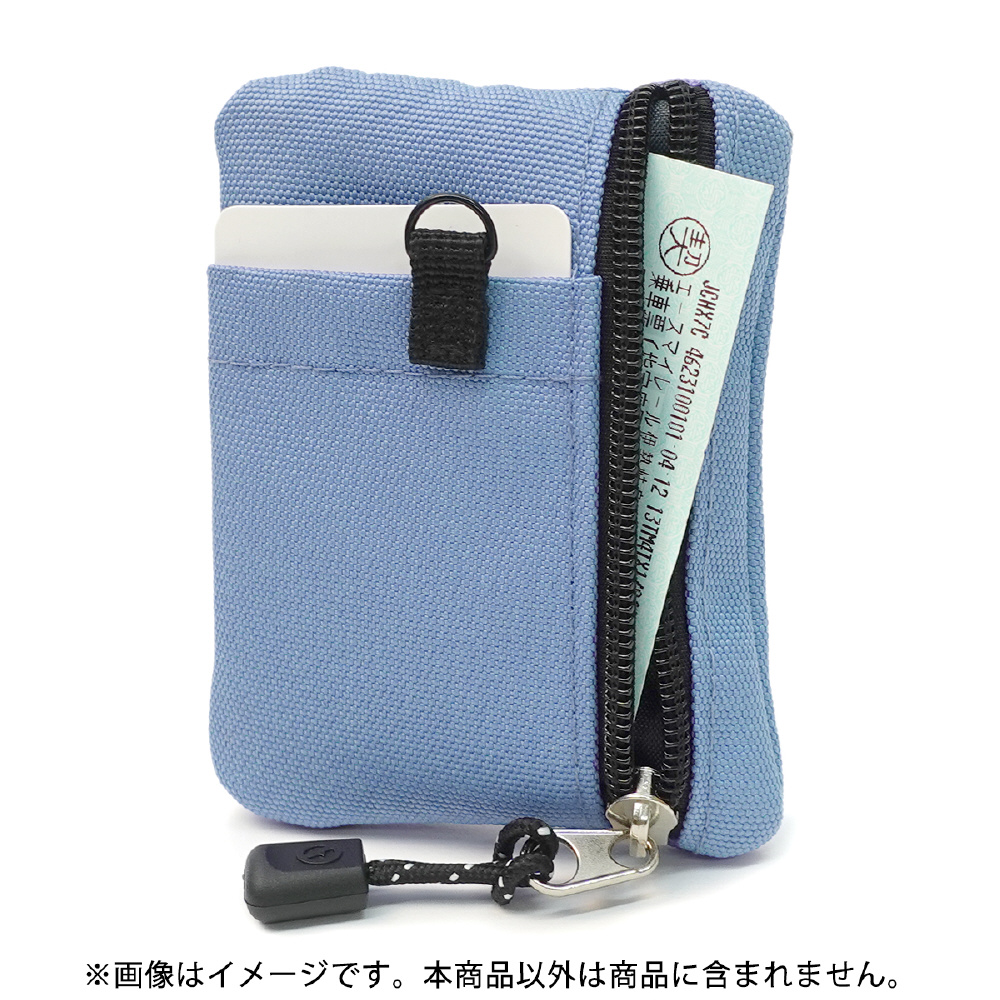 付属のカラビナでバッグやボトムスに取り付けて持ち運びが可能。フロント、バッグにそれぞれジッパーポケットがあり、小銭などはもちろん、鍵やリップなど小物をいれて持ち運ぶこともできます。バックにはカードポケットも設けており、ICカードなどを収納できます。カラーはブラック、ネイビー、ラベンダー、ライトブルーの全4色展開。プレゼントなどにもおすすめのアイテムです。