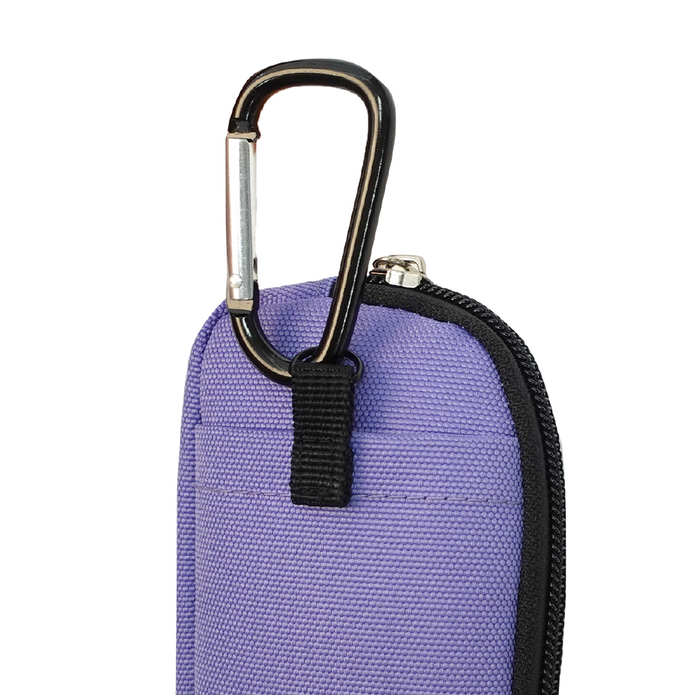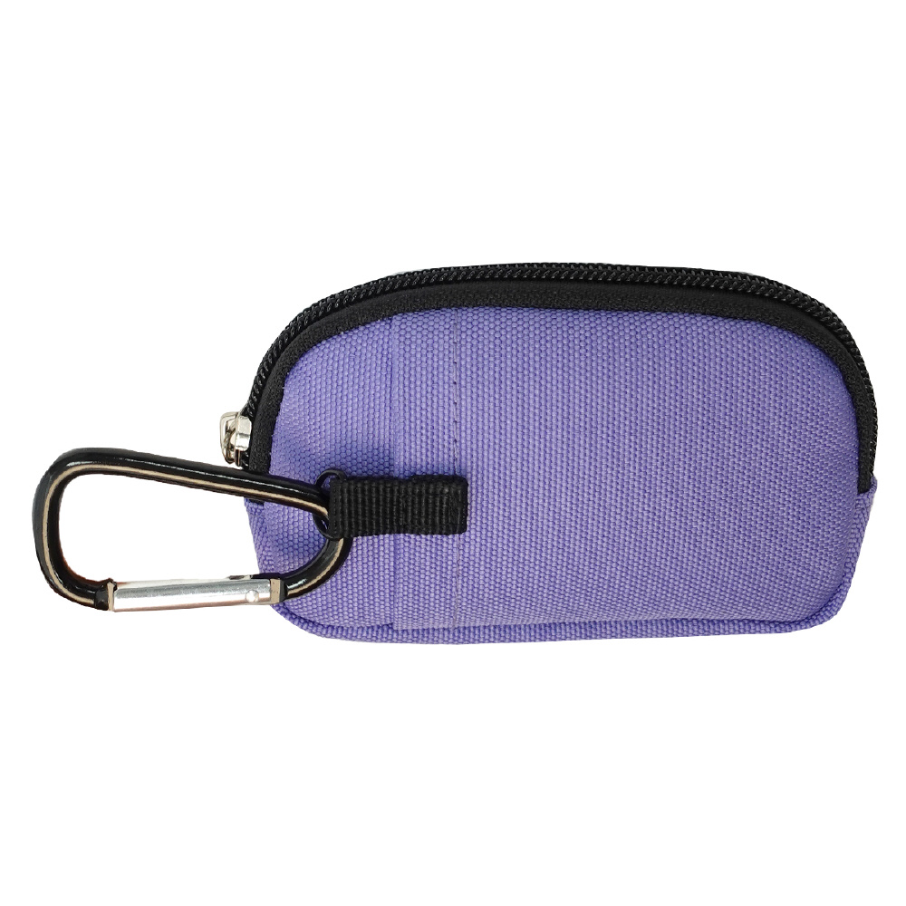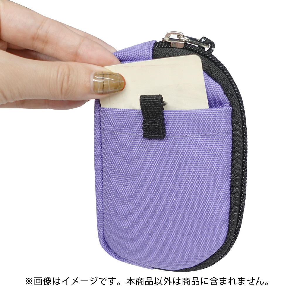 付属のカラビナでバッグやボトムスに取り付けて持ち運びが可能。メインルームはジッパー式で小銭などはもちろん、リップなど小物をいれて持ち運ぶこともできます。フロントには鍵などを収納できるジッパーポケットを備えています。バックにはカードポケットも設けており、ICカードなどを収納できます。カラーはブラック、ネイビー、ラベンダー、ライトブルーの全4色展開。プレゼントなどにもおすすめのアイテムです。