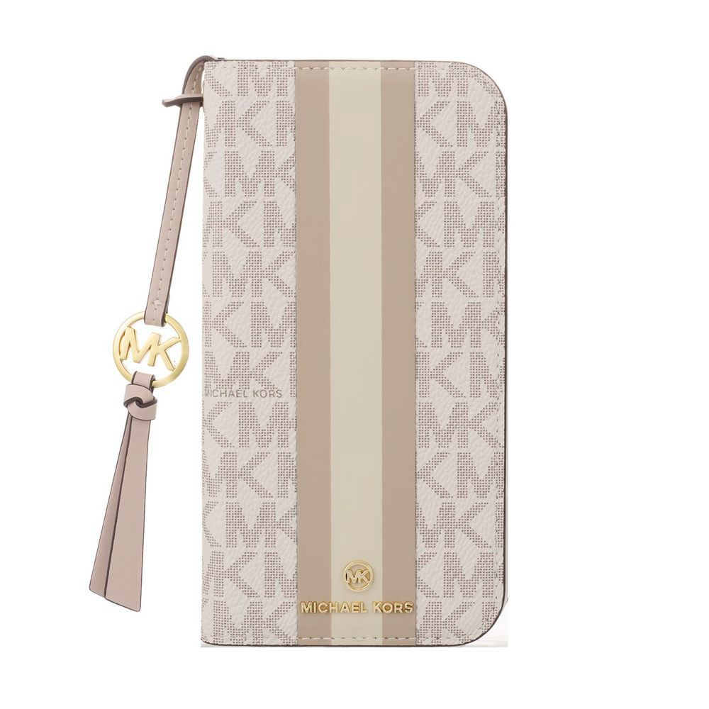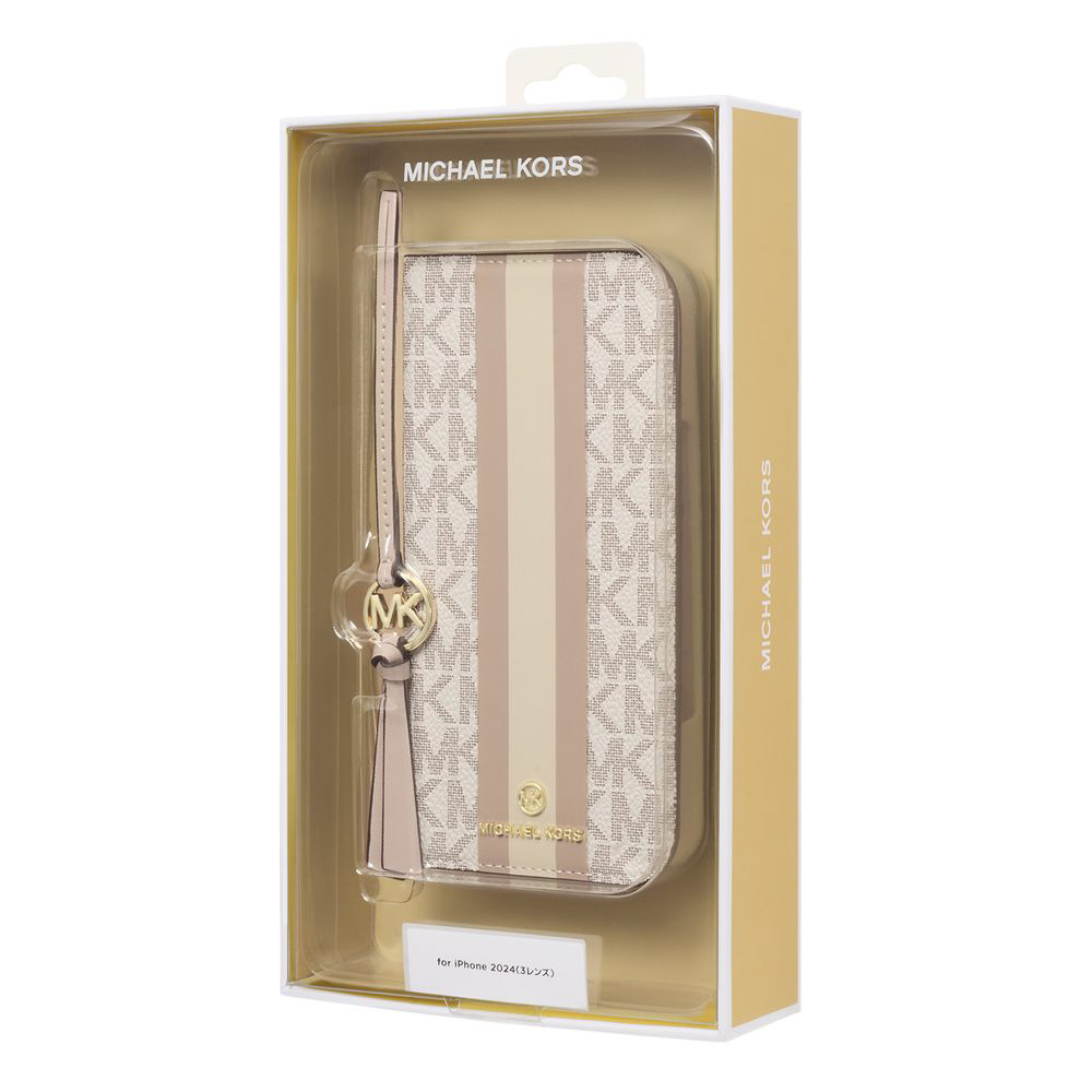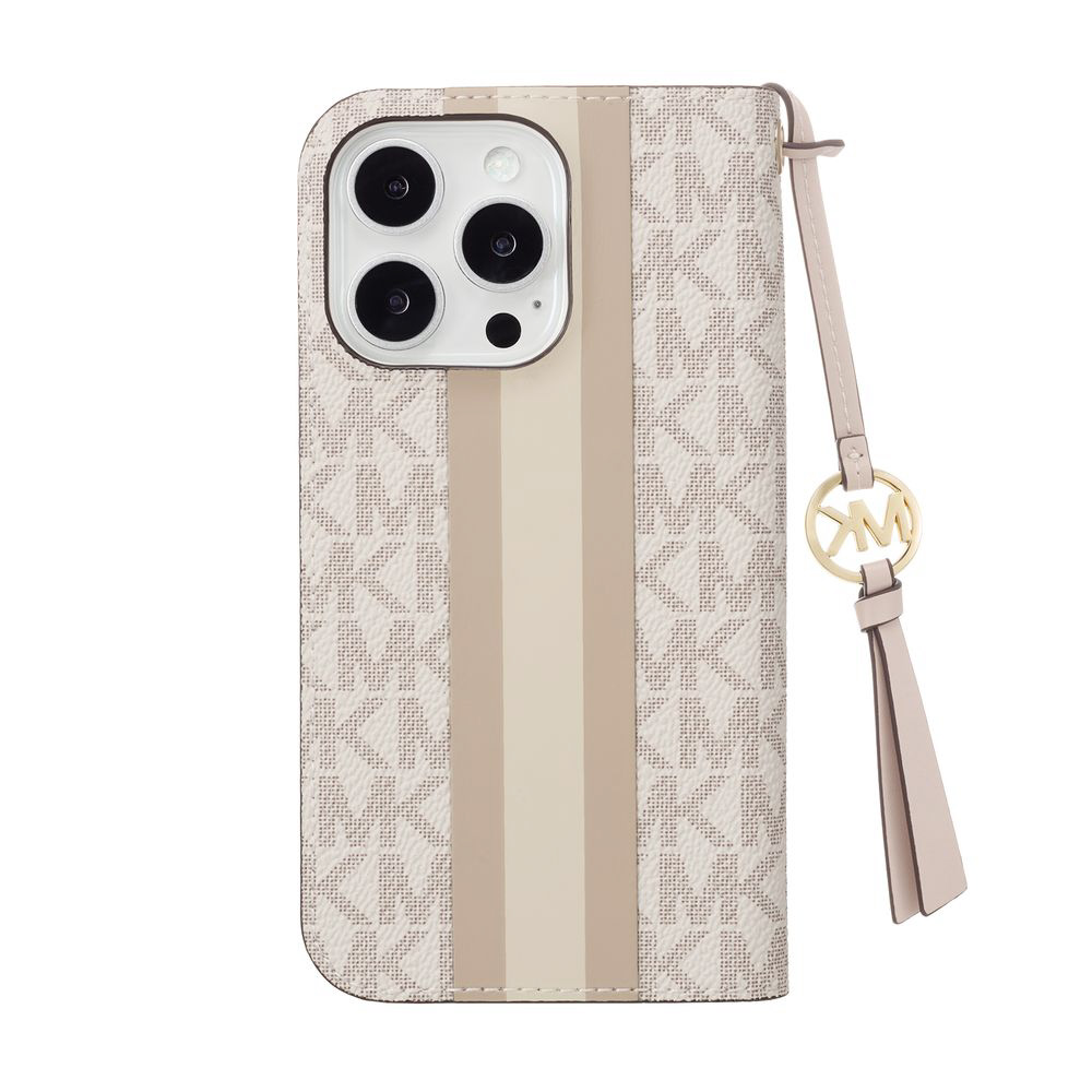 MICHAEL KORS - フォリオ ケース ストライプ タッセルチャーム付 Magsafe対応 iPhone 16 Pro(6.3インチ) ケース Vanilla MKSTTCVNLFLIP2463P