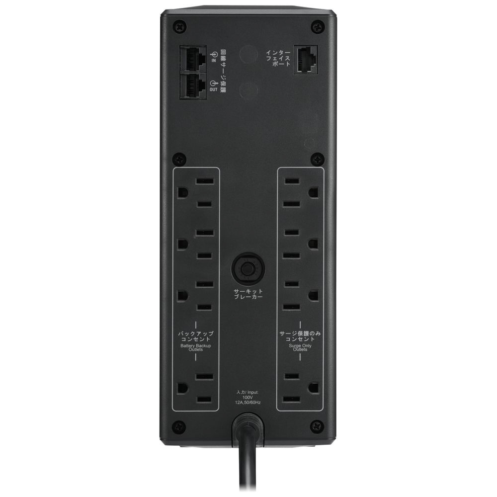 ■出力容量 1200VA/720W、ラインインタラクティブUPS、サージ保護+バックアップコンセント(4)、サージ保護のみコンセント(4)、リセット可能入力サーキットブレーカー、長寿命バッテリー(期待寿命4〜5年:周囲温度25℃)、10/100/1000Base-T ネットワーク回線サージ保護、電源管理ソフトウェア PowerChute Personal Edition バンドル、先出しセンドバック保証5年が付いたモデルです。
