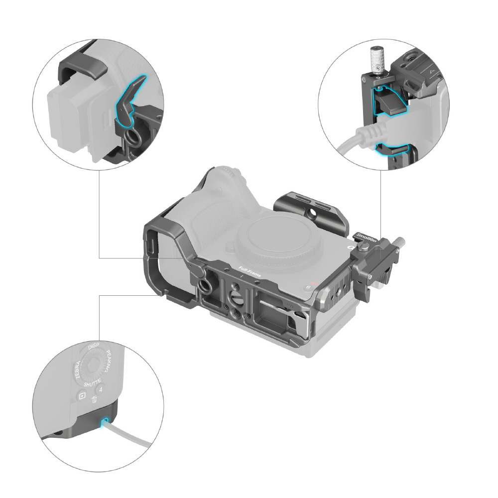 ・多彩な取り付けオプション:1/4 インチ - 20 ネジ穴、ARRI 3/8 インチ - 16 位置決め穴、コールドシューマウント、NATO レール、QD ソケットサポートなど、ハンドル、マイク、LED ライト、モニターなどを取り付けるための複数の取り付けポイントを提供します。