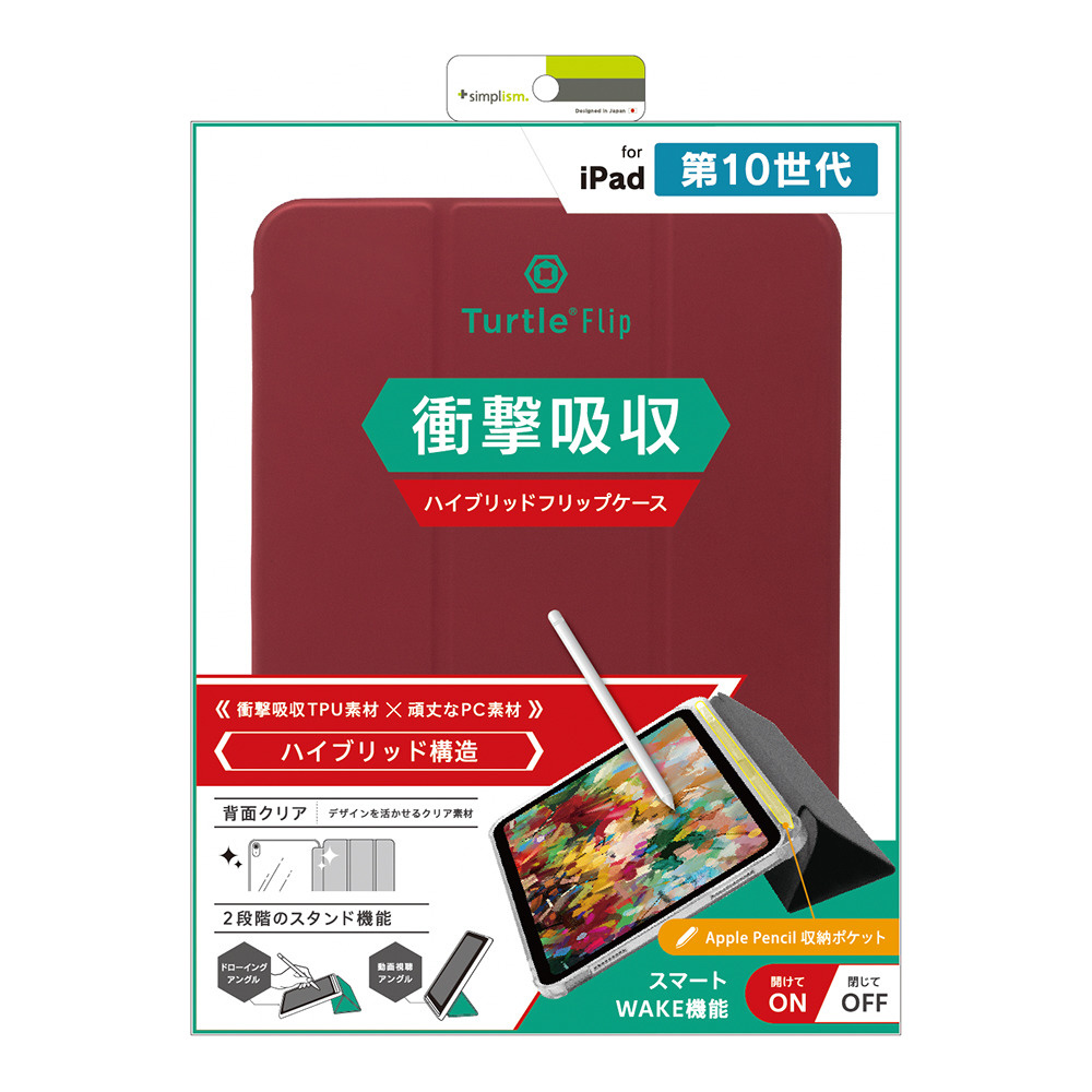 11インチ iPad(A16)、10.9インチ iPad(第10世代)用 Turtle Flip Apple Pencil収納可能 衝撃吸収 ハイブリッドクリアフリップケース ワインレッド TR-IPD2410-FT-SMWR