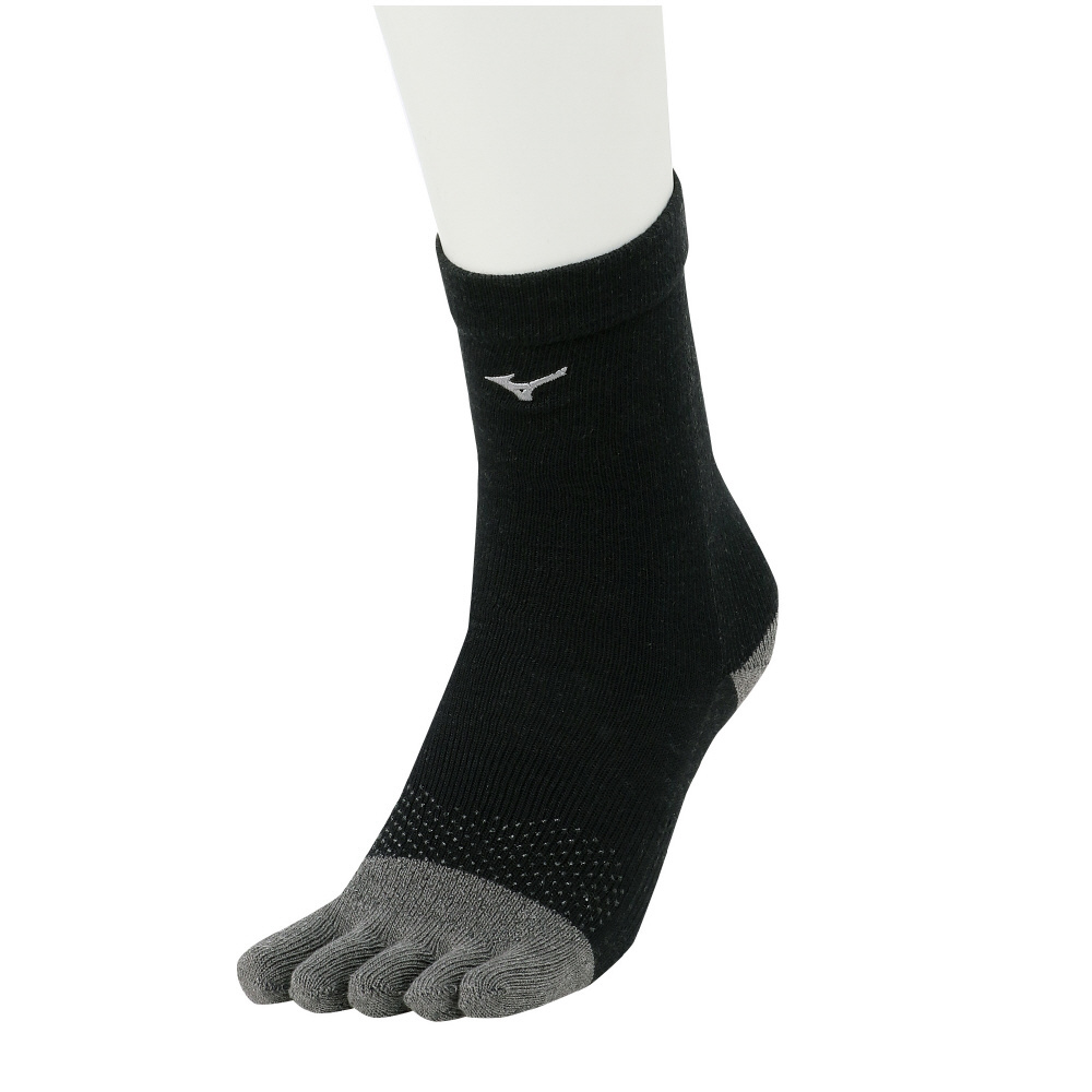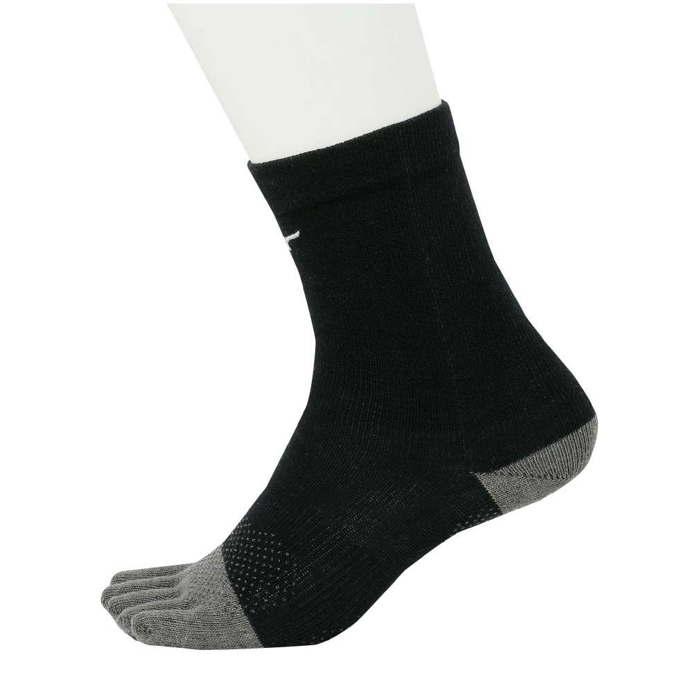 温かブレスサーモを使用した5本指ミドル丈ソックス。指裏、かかと、甲部部に滑り止め付き。