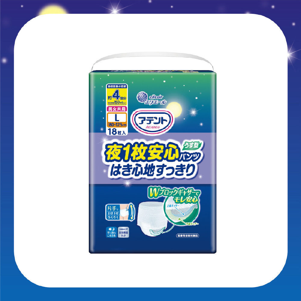 アテント夜1枚安心うす型パンツはき心地すっきり男女共用L18枚