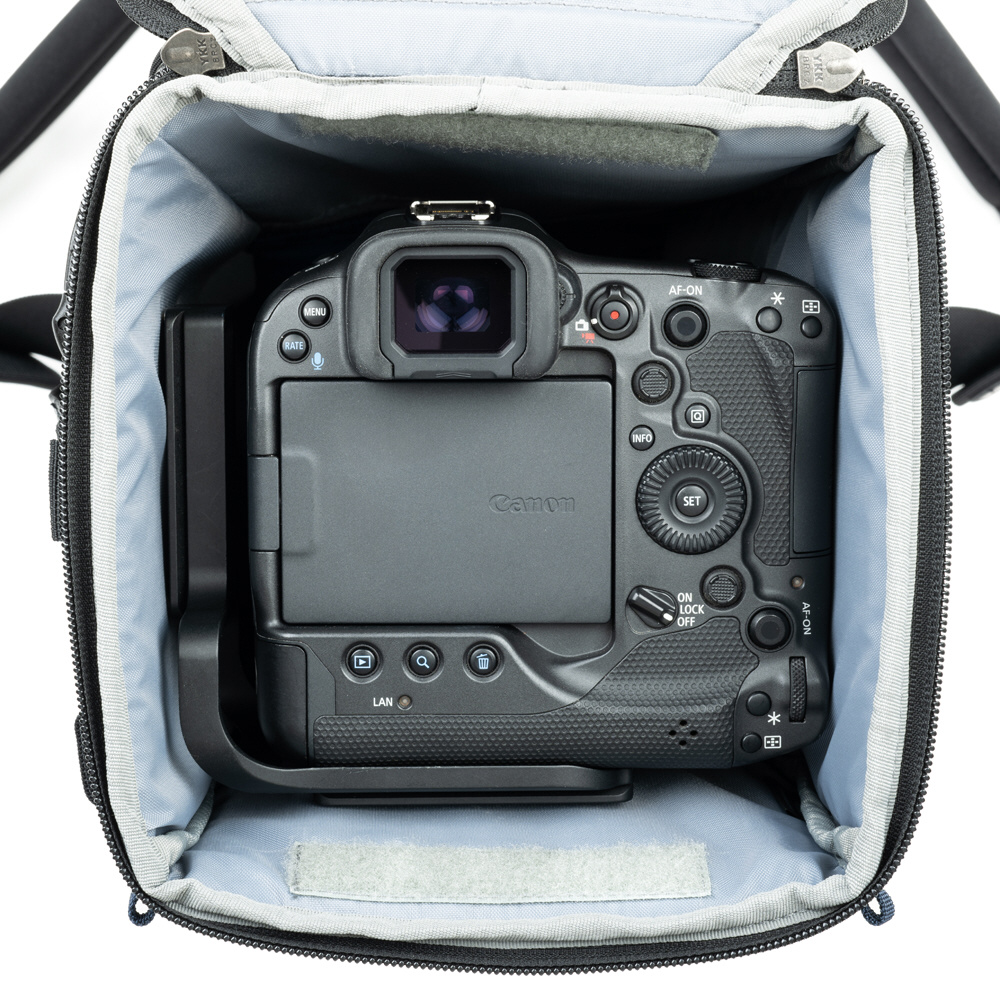 30.5cmまでのレンズを装着したグリップ付一眼レフを収納可能。