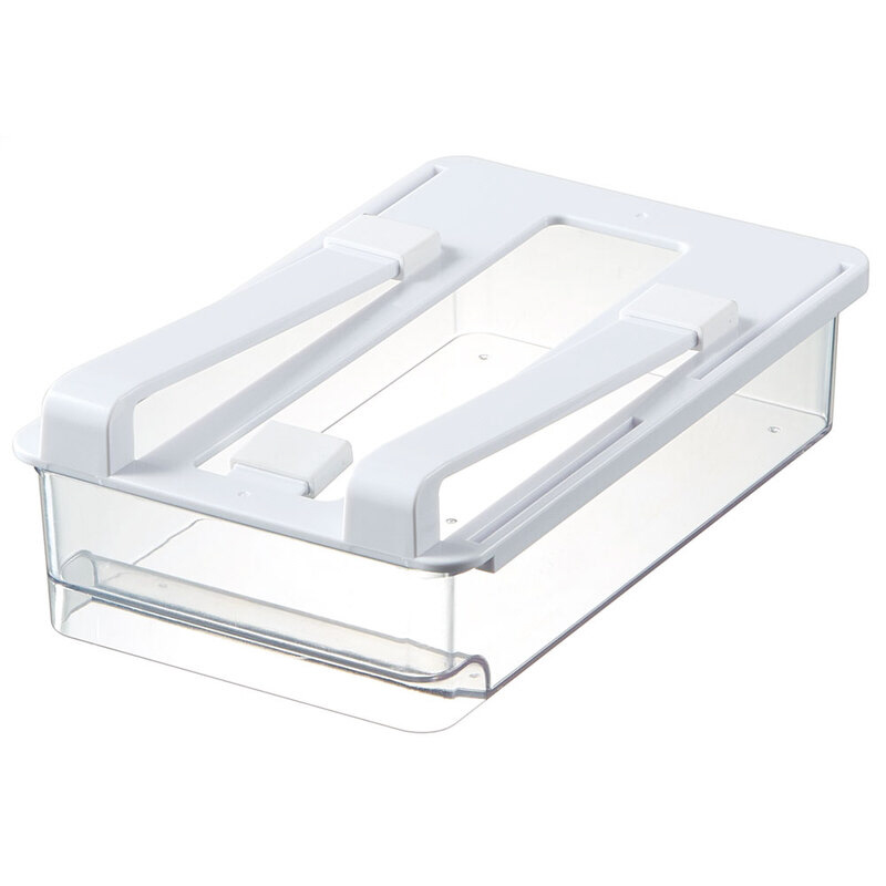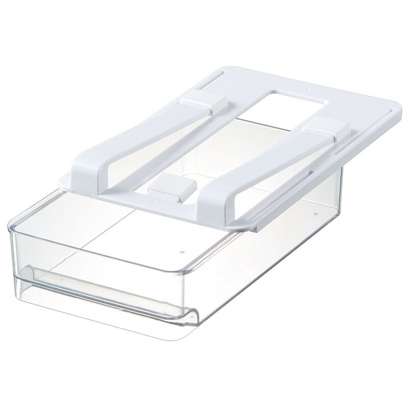 よく使う食材をすっきり収納!冷蔵庫の棚下スペースをムダなく活用できる引き出しトレー!3点のすべり止めで棚板をしっかりキャッチ!ガタつきにくくスムーズに引き出せます。