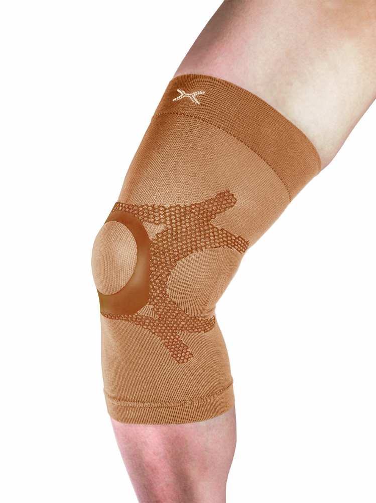ヒザのお皿(膝蓋骨)周りのみを固定することで、生地が厚くて動きにくい、ヒザ裏のムレ感・ゴロツキの低減、固定力が弱い等の悩みを解決しました。