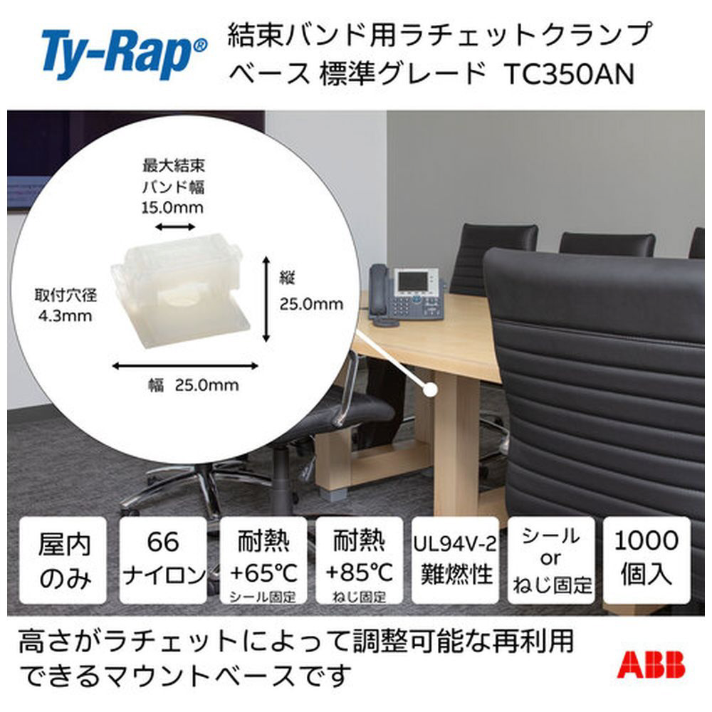TY−Rap 結束バンド用ラチェットクランプベース(ねじ固定/粘着テープ付き) ラチェットクランプベース標準(ナチュラル色)(大袋)タイ幅最大15mm1000個入り